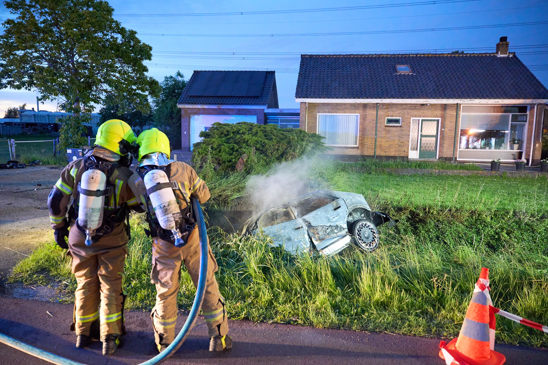Bestuurder overleden nadat auto in sloot belandt en in brand vliegt