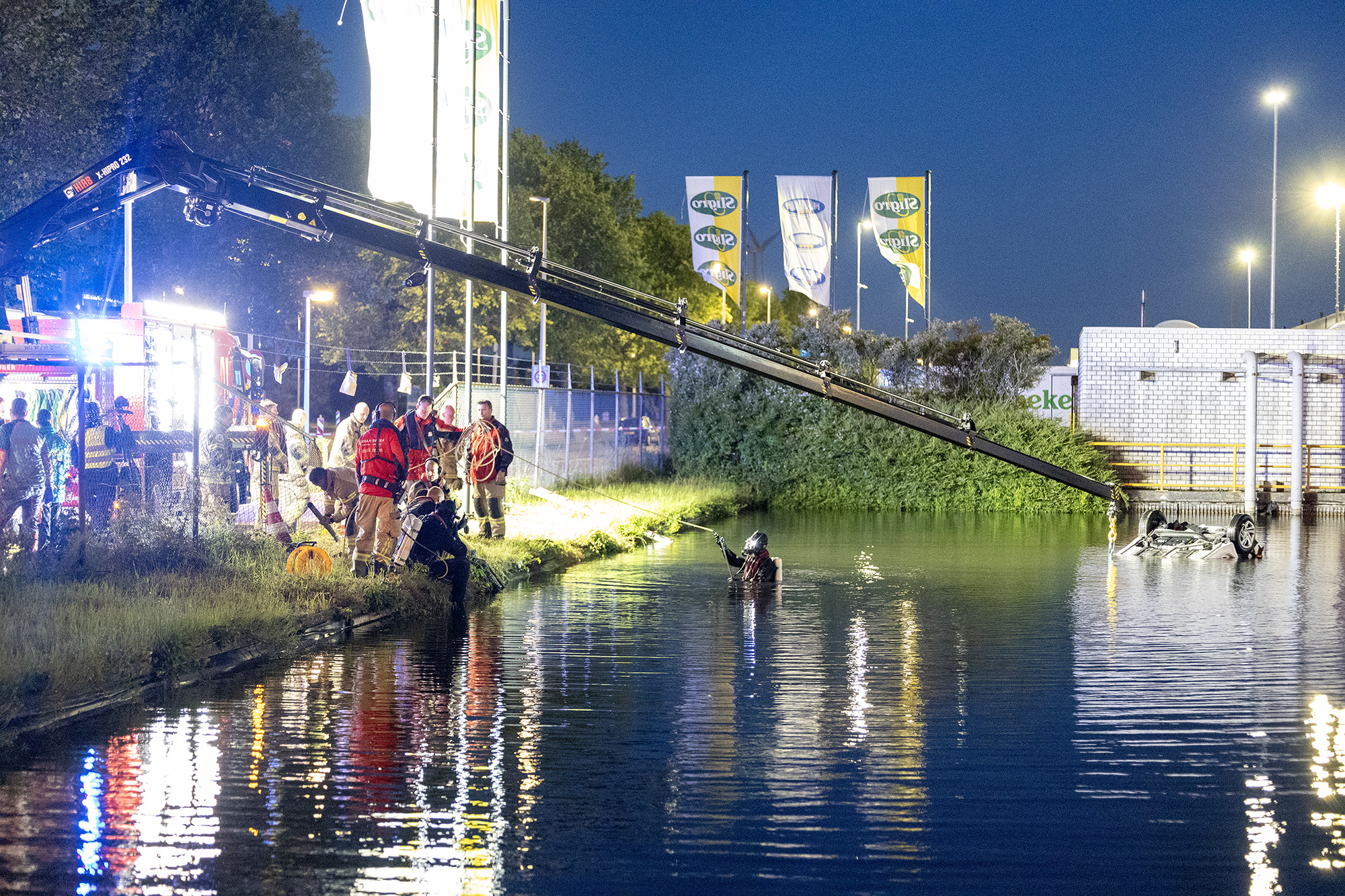 Amsterdam - Bij een ernstig ongeval in Amsterdam zijn zaterdagavond twee personen gereanimeerd. Rond half elf ging het mis op de kruising van de Westpoortweg met de Dortmuiden toen een automobilist eerst een taxi raakte, toen door een hekwerk schoot en in het water op zijn dak tot stilstand kwam.]Meerdere hulpdiensten kwamen met spoed ter plaatse om hulp te bieden. In het voertuig zaten twee personen. Beide personen zijn naar de kant gehaald en moesten worden gereanimeerd. Beide slachtoffers zijn met spoed naar het ziekenhuis vervoerd. Over hun toestand is op dit moment nog niets bekend.De wagen is door de brandweer omhoog getakeld en duikers hebben nog naar eventuele andere inzittenden gezocht. De politie doet uitvoerig onderzoek om de toedracht van het ongeval te achterhalen.
