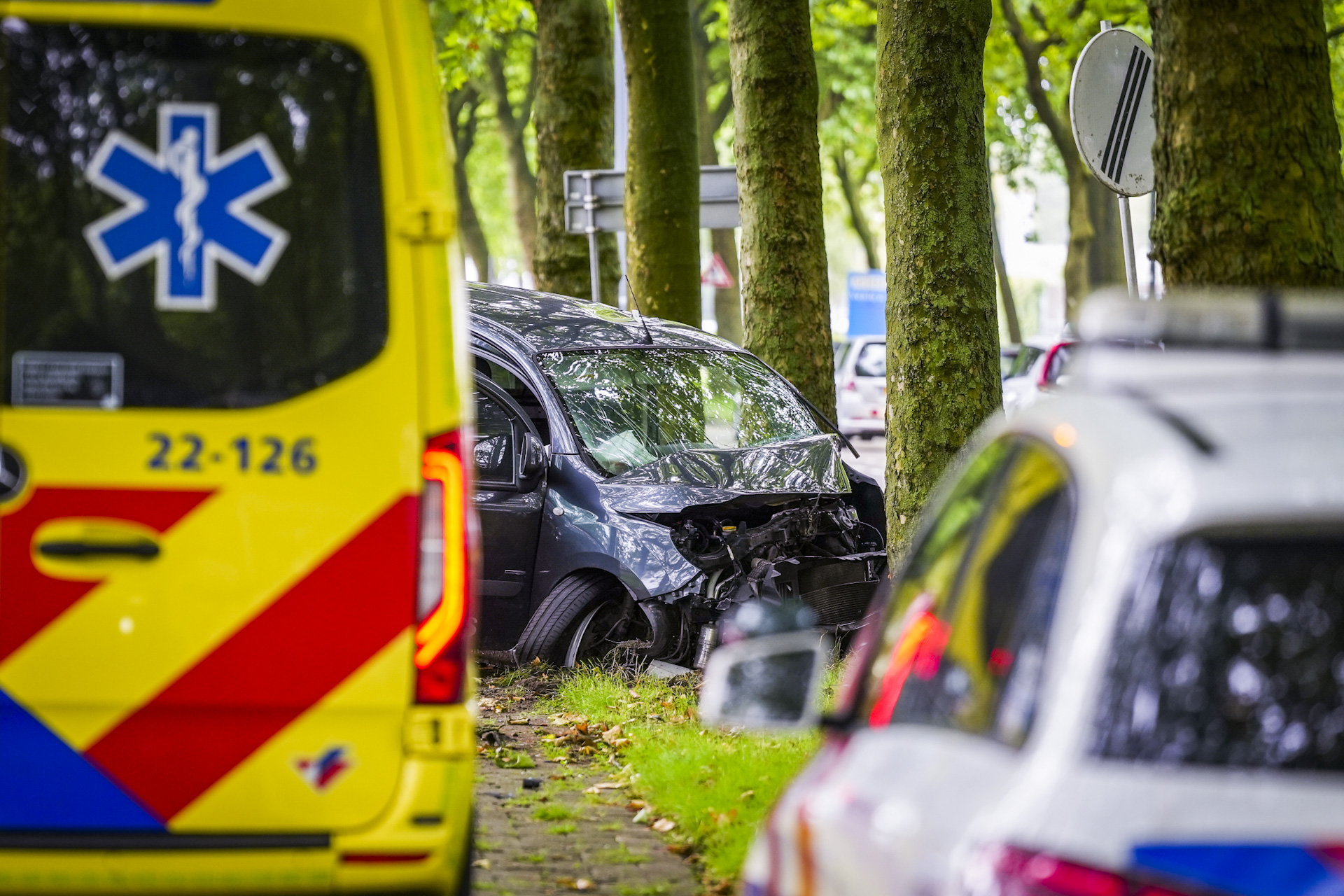 Bestuurder van bestelbus bekneld na botsing tegen boom