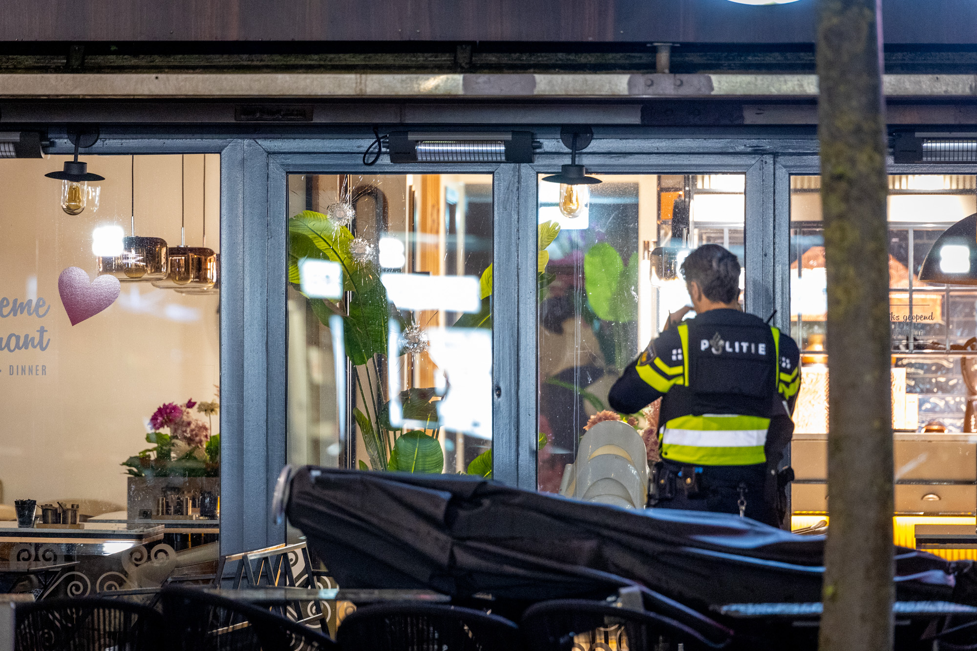Omstreeks half vier troffen meerdere schoten het restaurant, in het restaurant waren ten tijde van de beschieting nog een aantal mensen aanwezig. De politie zocht direct de omgeving af naar de verdachte(s), maar van hen was geen spoor meer te vinden. Bij het restaurant was goed te zien waar de inslagen uiteindelijk zaten, meerdere waren zichtbaar in het raam, maar ook één in het kozijn. Mogelijk is er nog meer geschoten, maar deze waren niet zichtbaar.