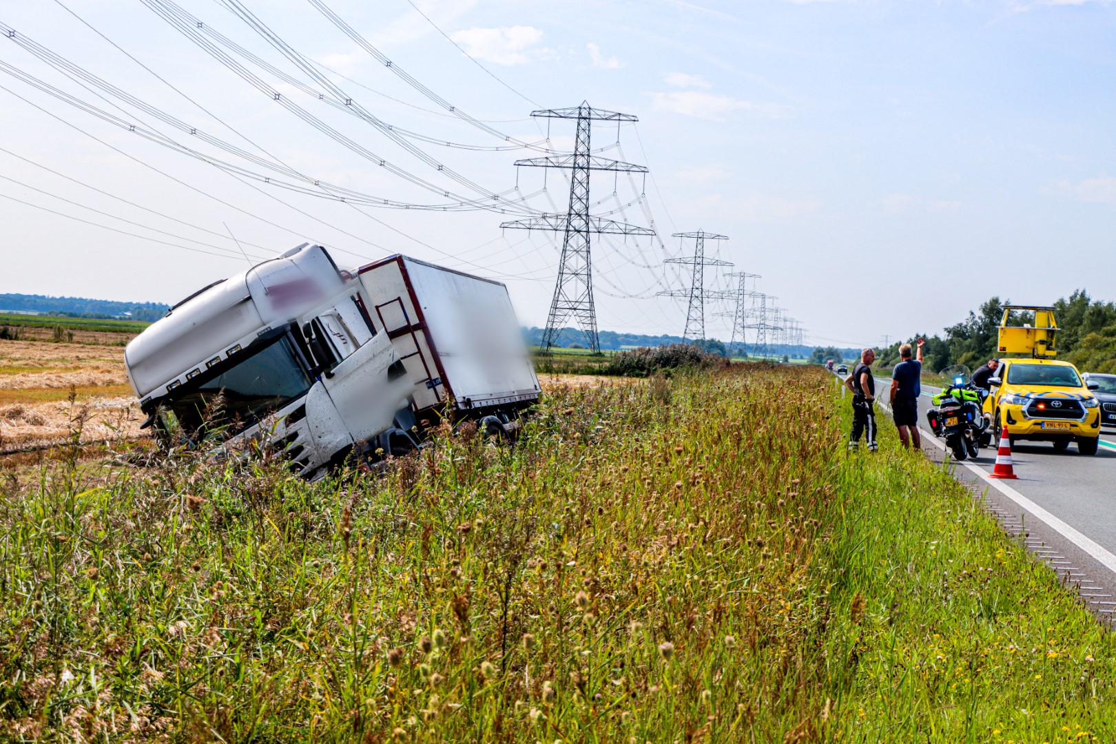 Vrachtwagen belandt in de greppel langs de Provincialeweg