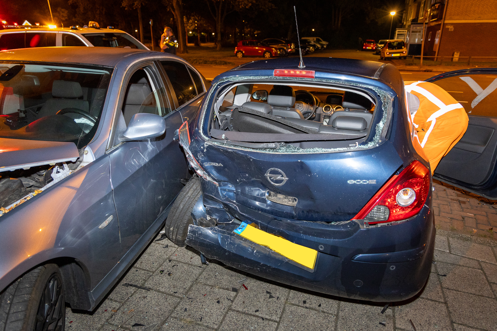 De brandweer is ter plaatse geweest, maar kon met onverrichte zaken weer retour. Hoe de automobilist nou precies de macht over het stuur is verloren is niet duidelijk, vanaf de kruising zijn de bandensporen goed zichtbaar. Alle beschadigde voertuigen zijn door een bergingsdienst afgesleept.