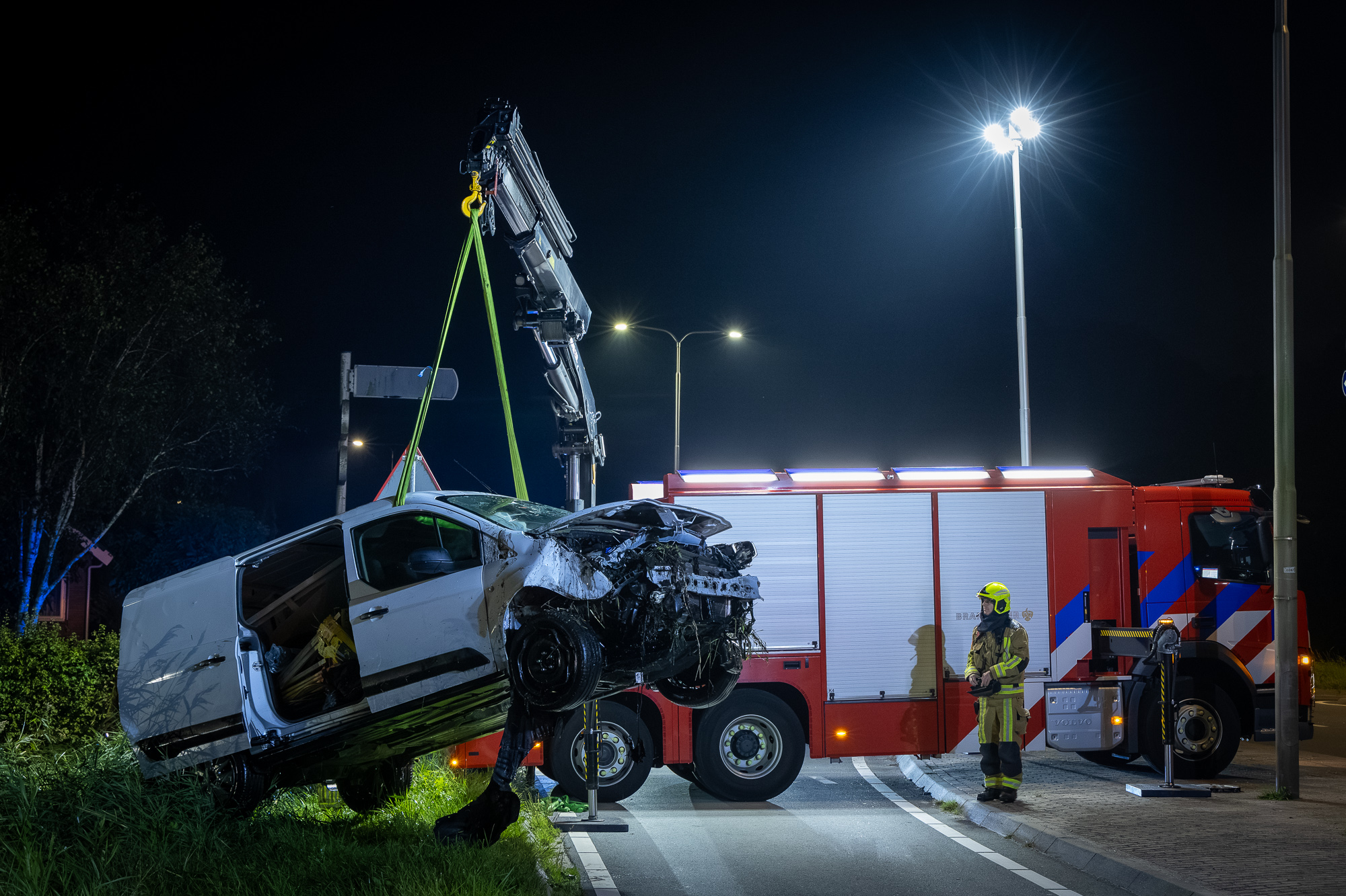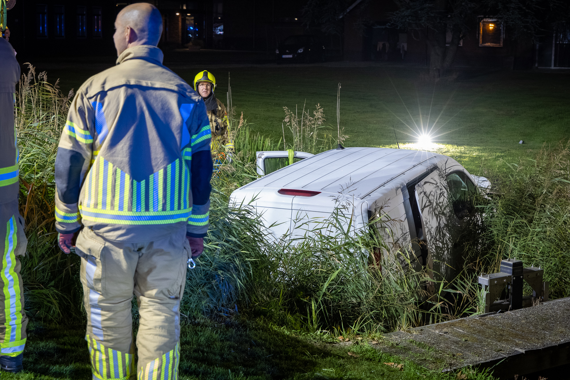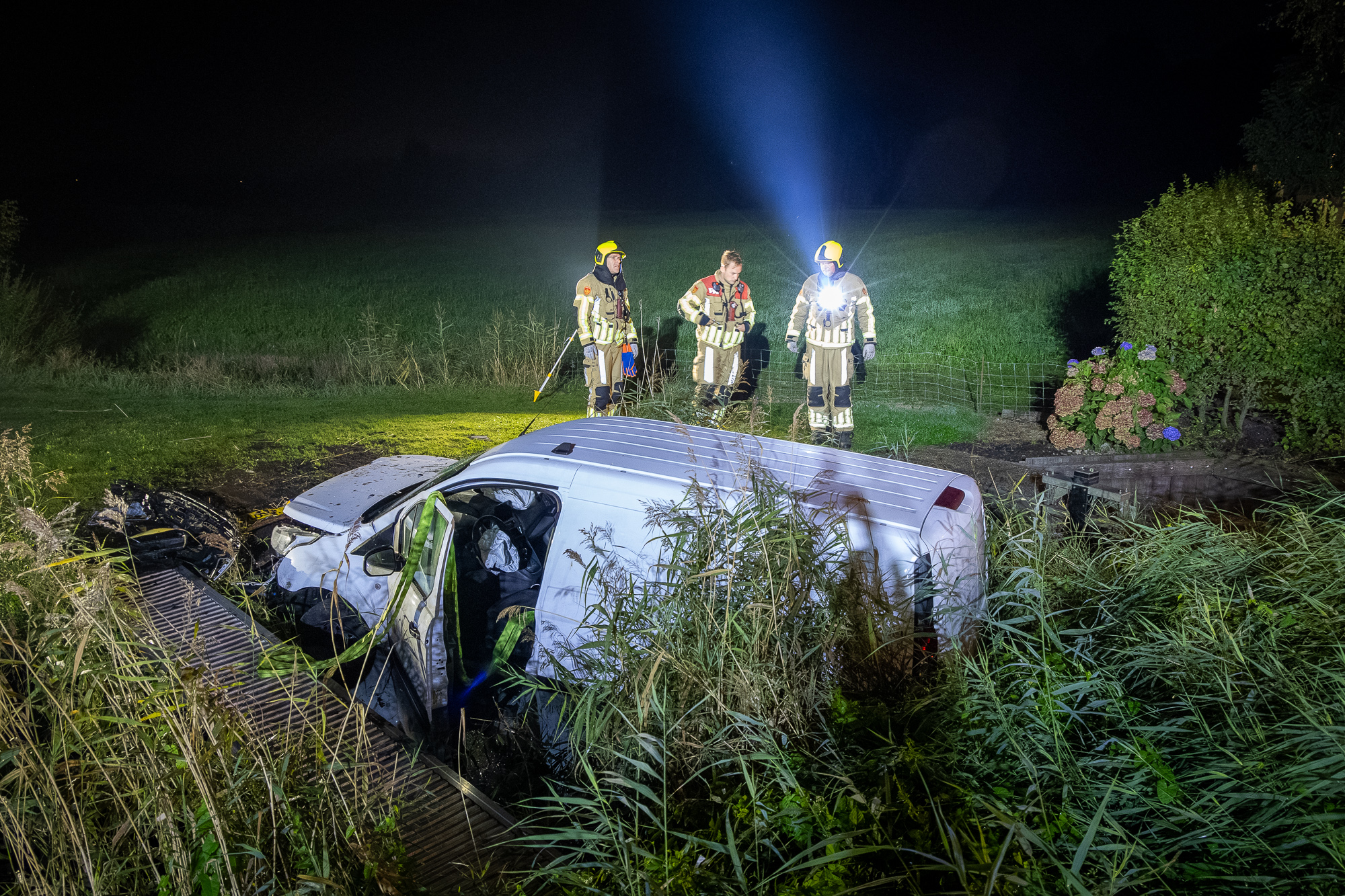 Brandweer takelt bestelwagen uit sloot na nachtelijk ongeval
