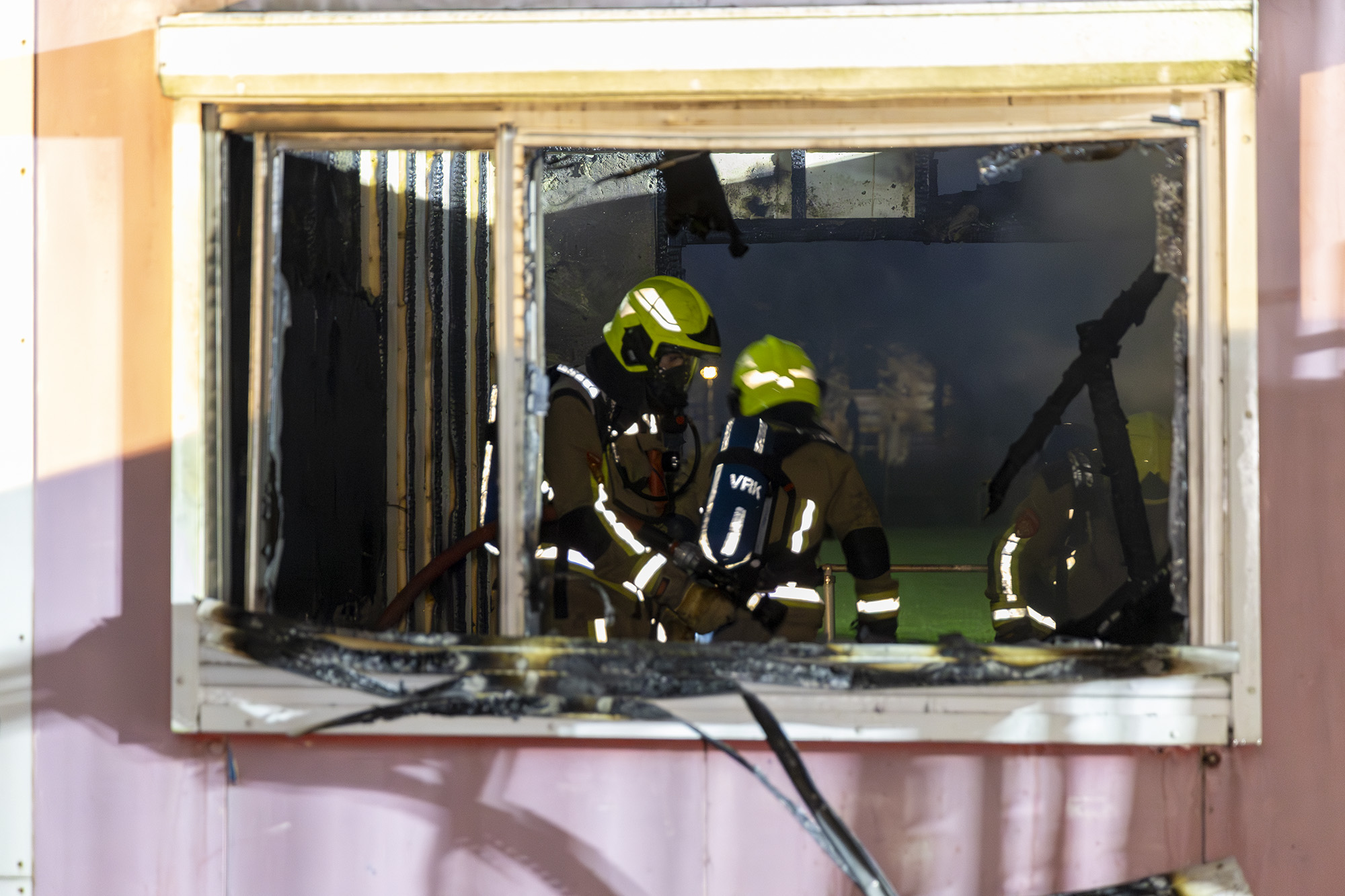 Meterhoge vlammen door brand in keet bij voetbalclub