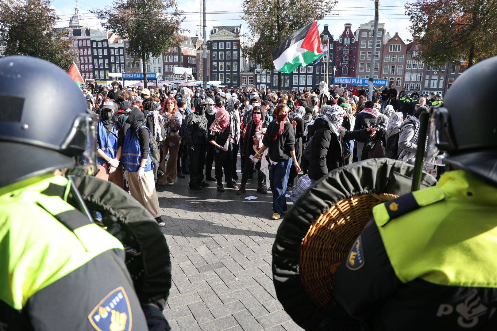 Het protest vond plaats nabij de herdenking van de Hamas-aanval op Israël, een jaar geleden, op de Dam. De ME werd ingezet omdat de betogers weigerden te vertrekken. Het aantal arrestanten is nog onbekend. De demonstratie begon bij de Prins Hendrikkade, maar de betogers mochten niet naar de Dam. Eerder op de dag werden meerdere pro-Palestijnse demonstranten opgepakt, sommigen vanwege verstoring of vuurwerkbezit.