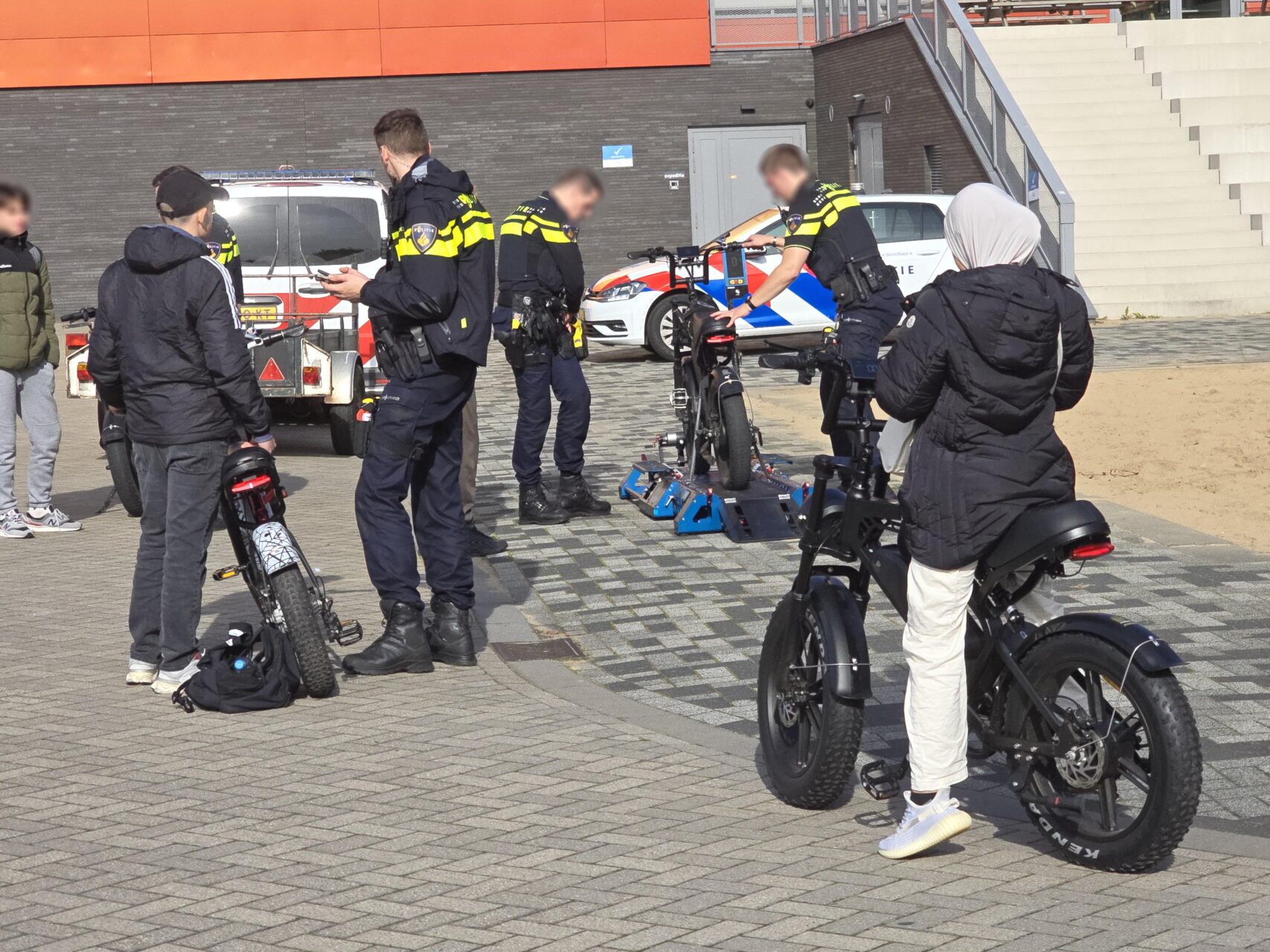 EDE – Dinsdagmiddag heeft de politie op het terrein van de Van der Knaaphal een grote controle uitgevoerd op fatbikes. De actie werd opgezet door politie-studenten in samenwerking met wijkagent Jannie de Ruijter. De controle was gericht op het opsporen van opgevoerde fatbikes, wat in Nederland verboden is en kan leiden tot een boete van 310 euro.