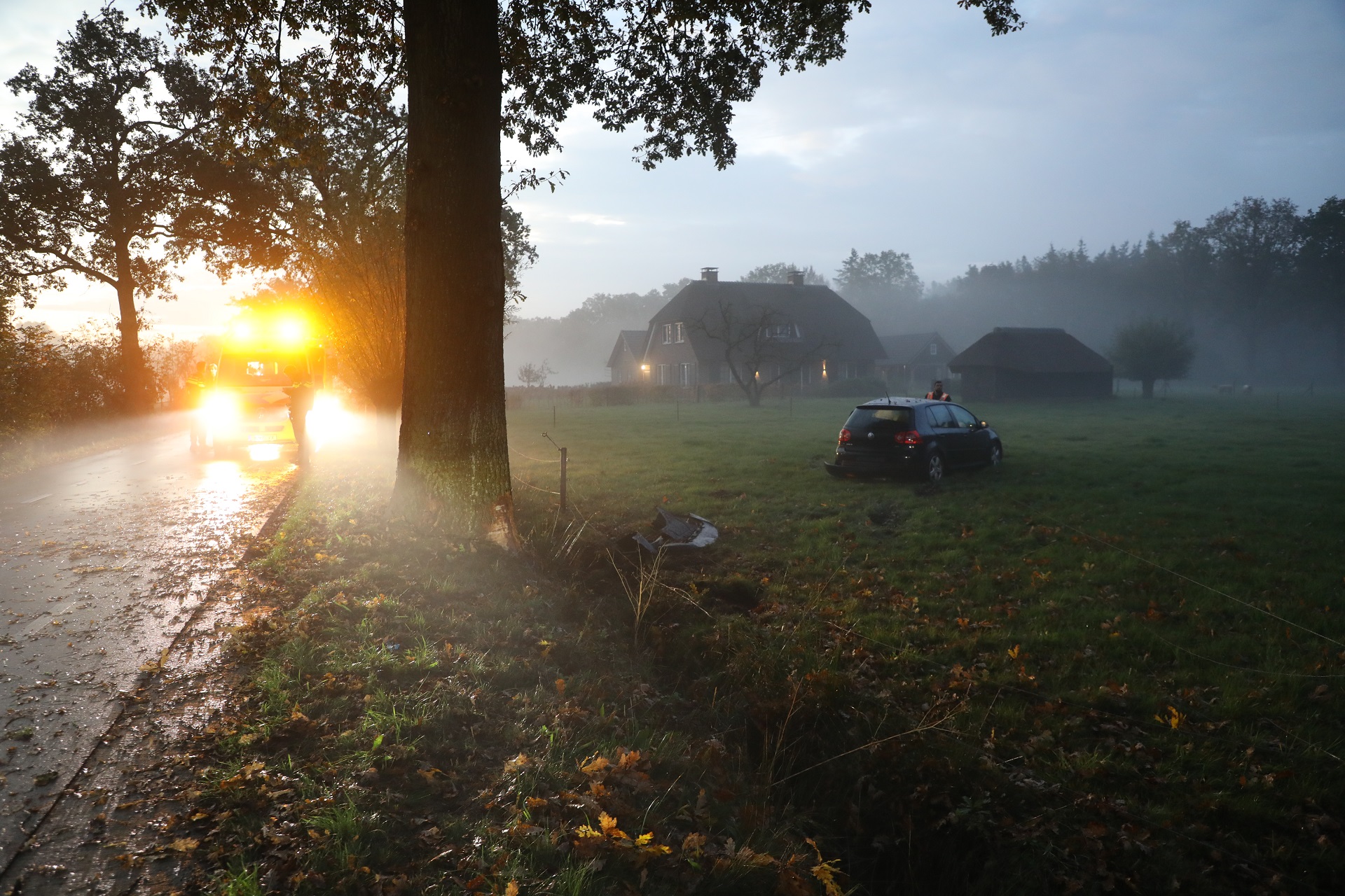 TERSCHUUR – Vrijdagochtend rond 07:10 uur is een jongeman gewond geraakt bij een eenzijdig ongeval in het buitengebied tussen Terschuur en Barneveld. De bestuurder verloor de controle over het stuur, waarna de auto met de zijkant tegen een boom botste en vervolgens in een weiland tot stilstand kwam.