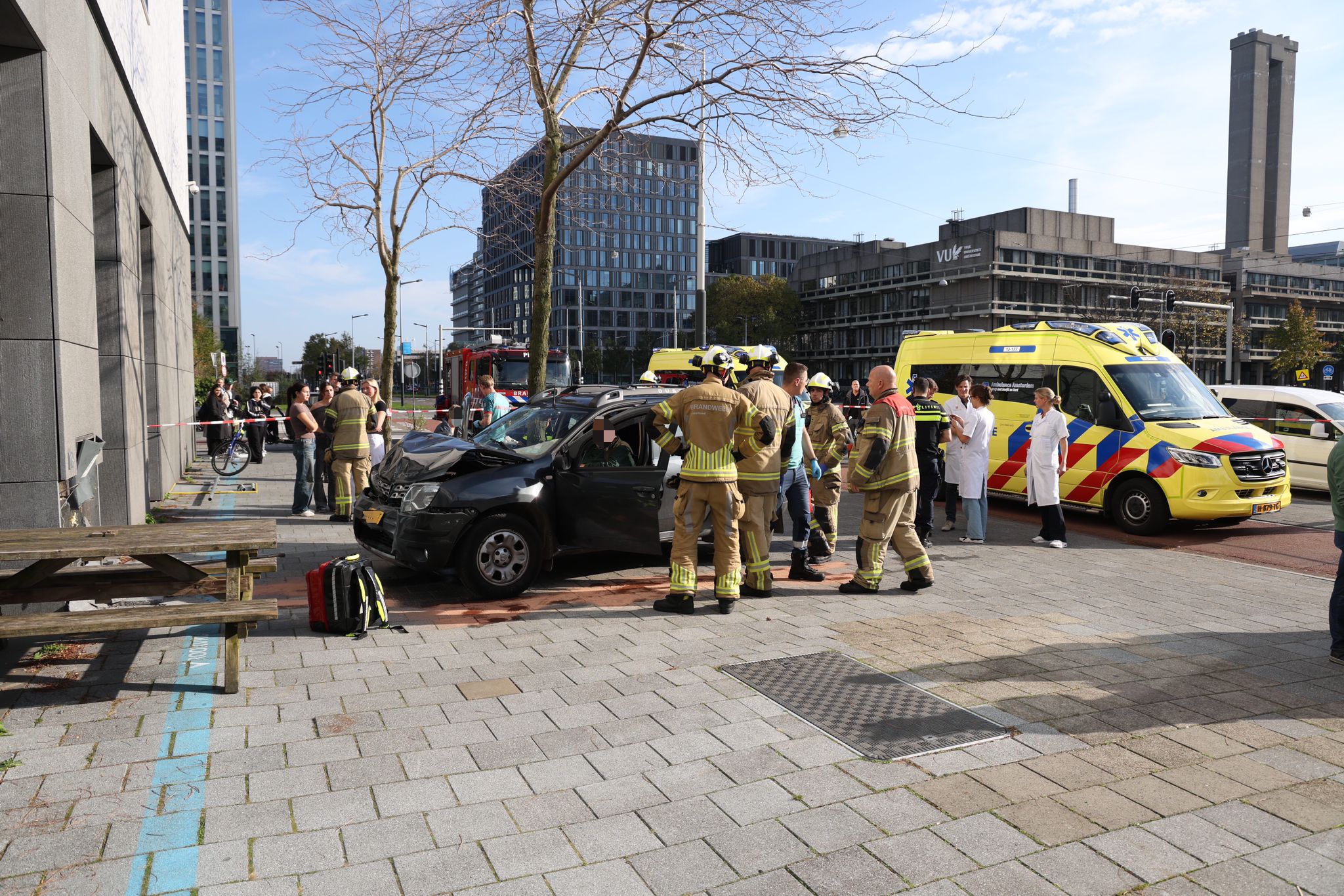 AMSTERDAM – Bij een ongeval op de Boelelaan in Amsterdam is vrijdagmiddag een auto tegen een bankje gebotst, waarbij minstens één persoon gewond is geraakt.