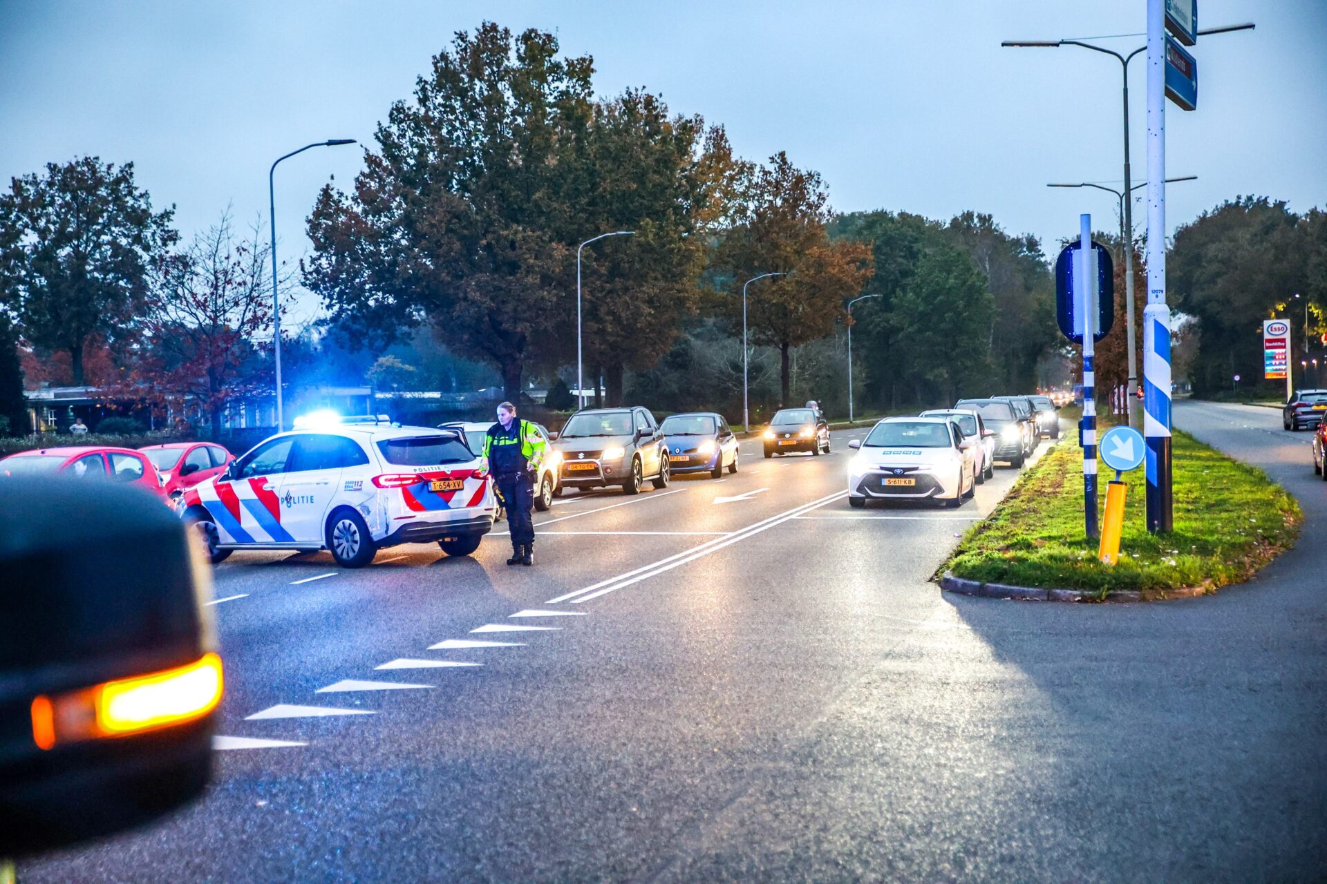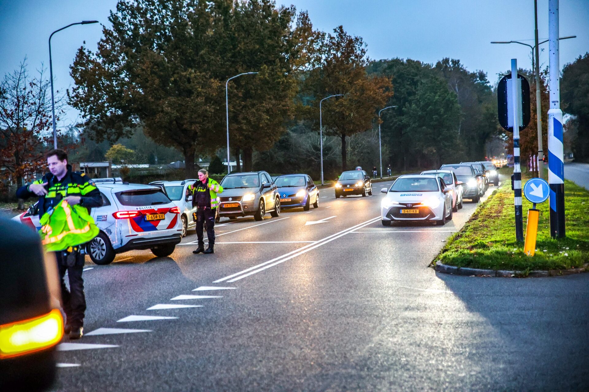 De weg is deels afgesloten, en het verkeer wordt door de politie geregeld, wat leidt tot files in de omgeving. Twee ambulances kwamen ter plaatse om de betrokkenen te controleren op eventuele verwondingen.