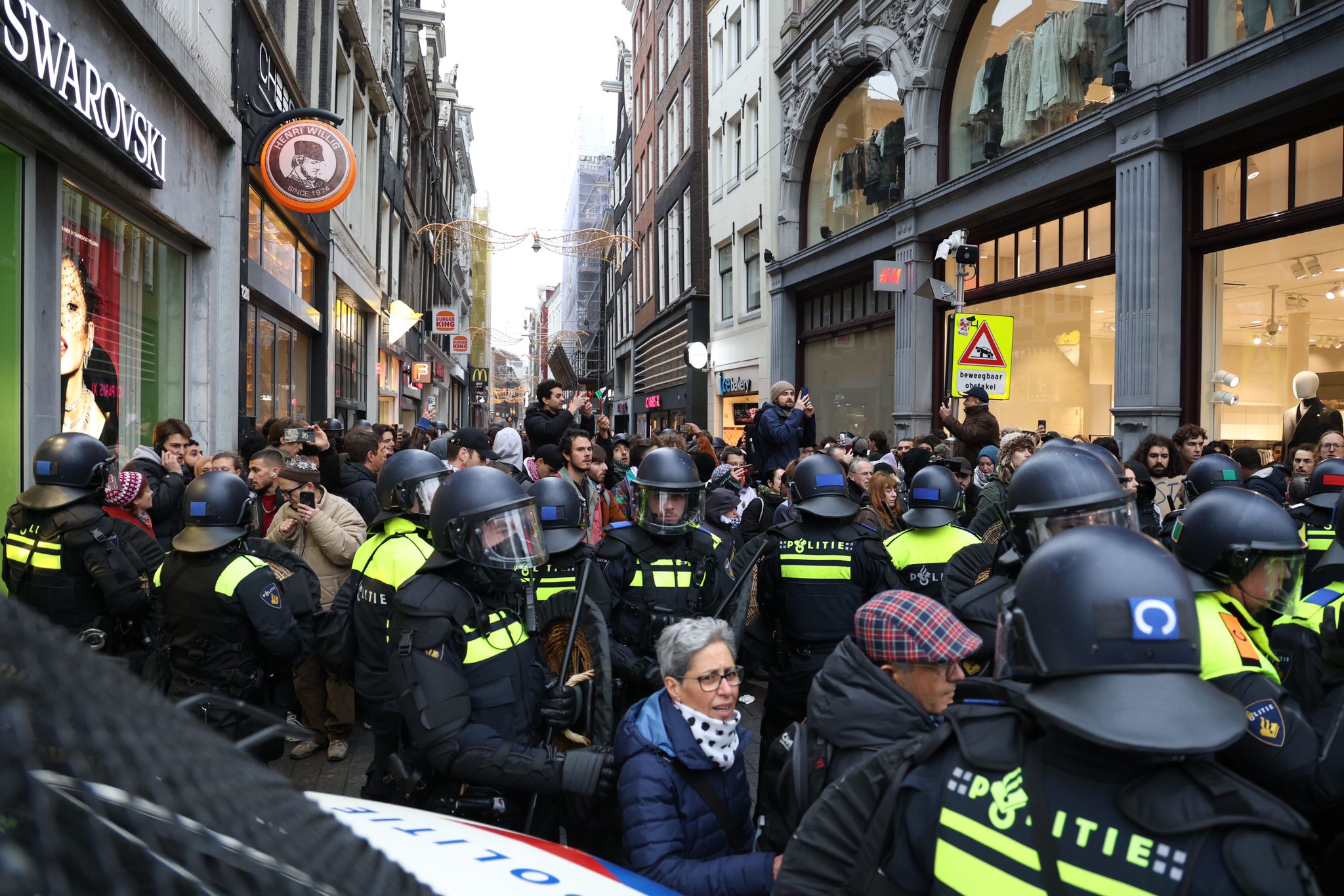 AMSTERDAM – De politie arresteert de overgebleven demonstranten op de Dam en omliggende straten in Amsterdam. Na charges werden pro-Palestina-betogers verdreven naar onder andere de Nieuwendijk, en arrestanten worden met bussen afgevoerd.