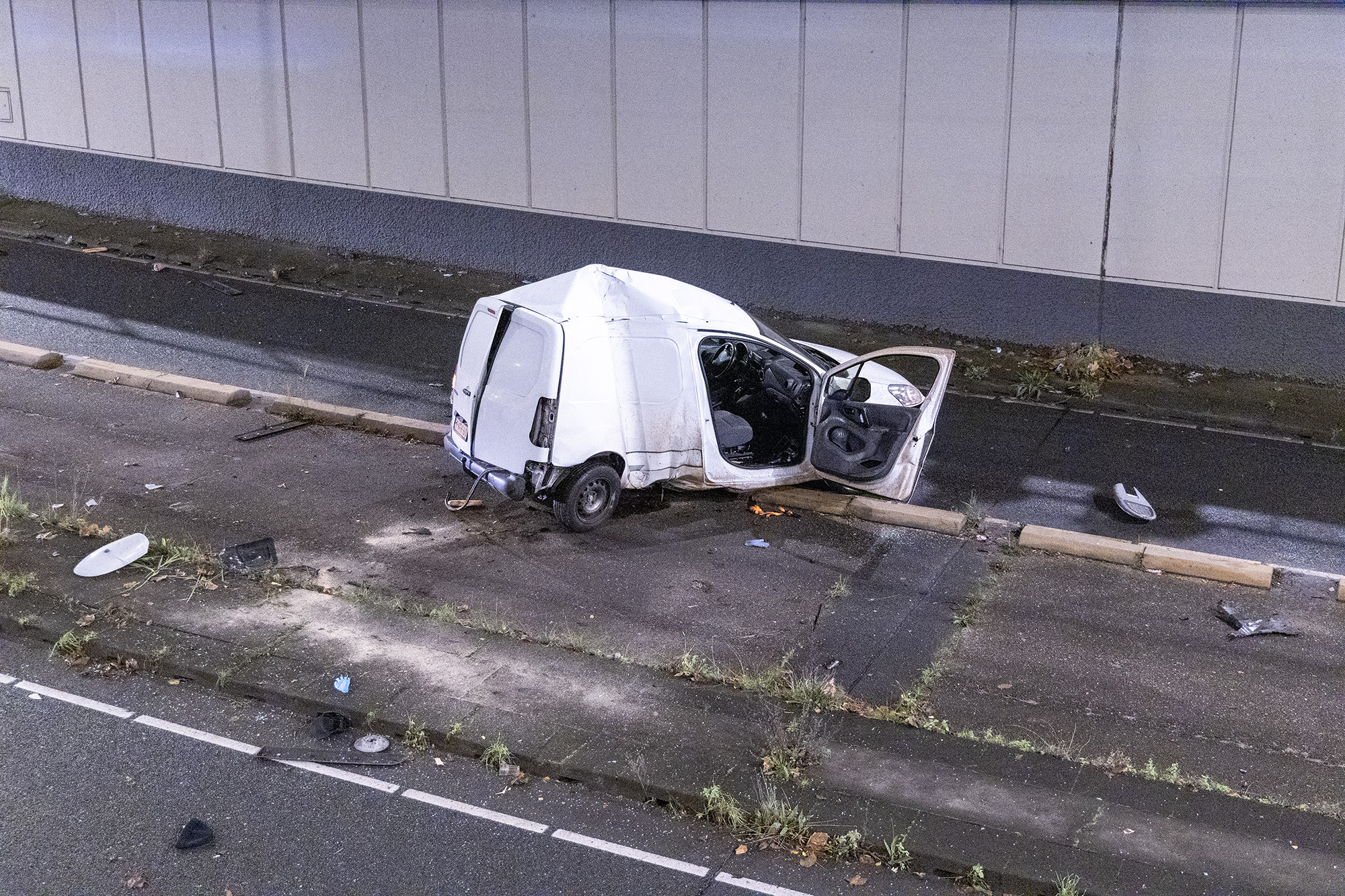 Busje crasht tegen lantaarnpaal, slachtoffer eruit geslingerd