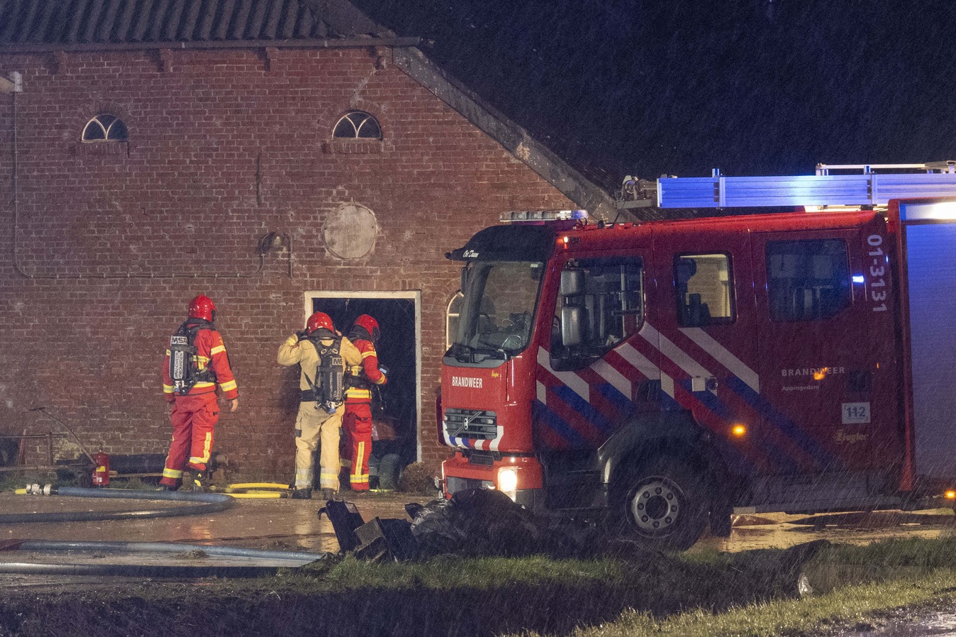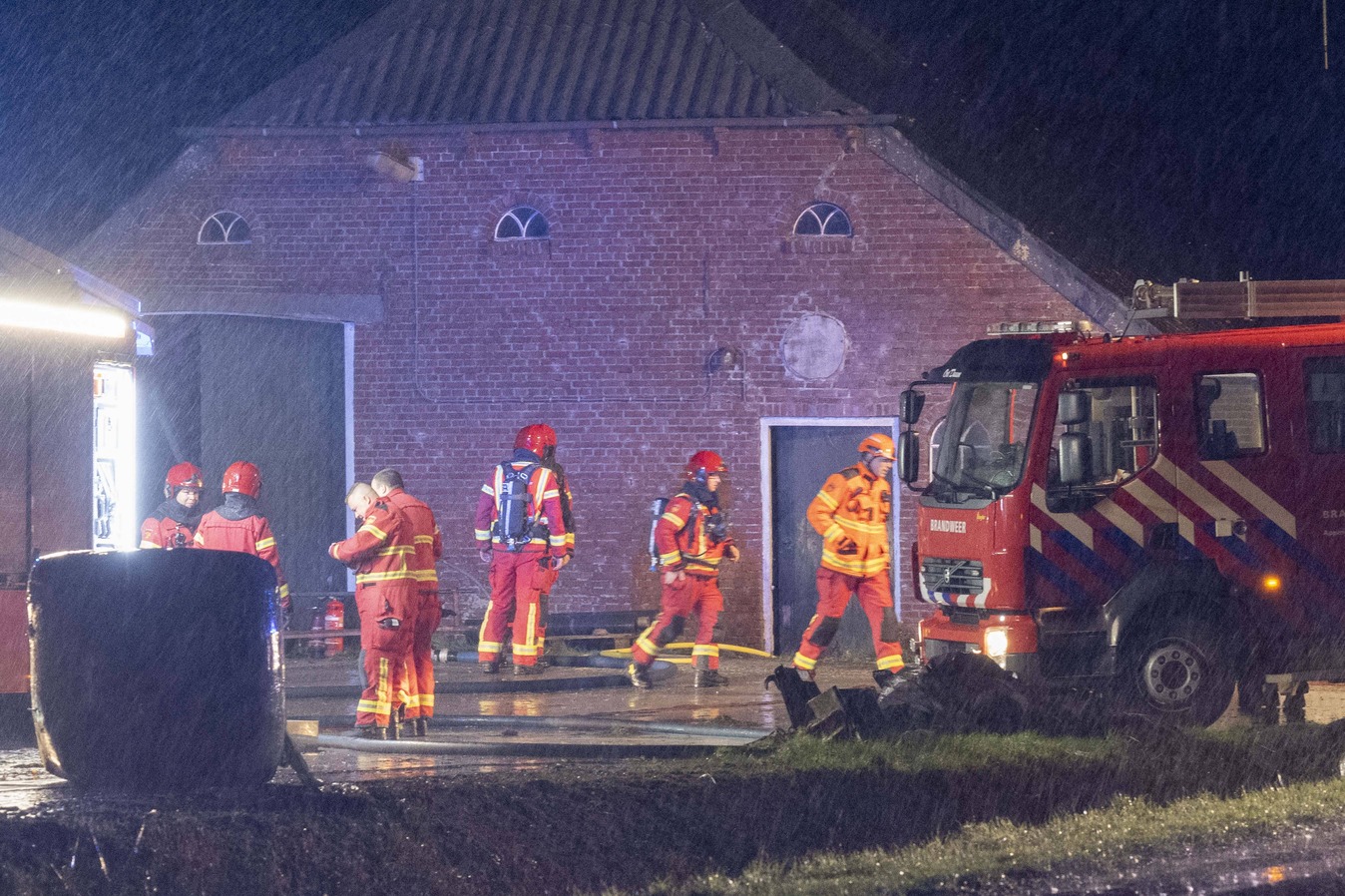 Er vielen geen gewonden bij het incident. De omvang van de schade aan de stal is nog niet bekend.