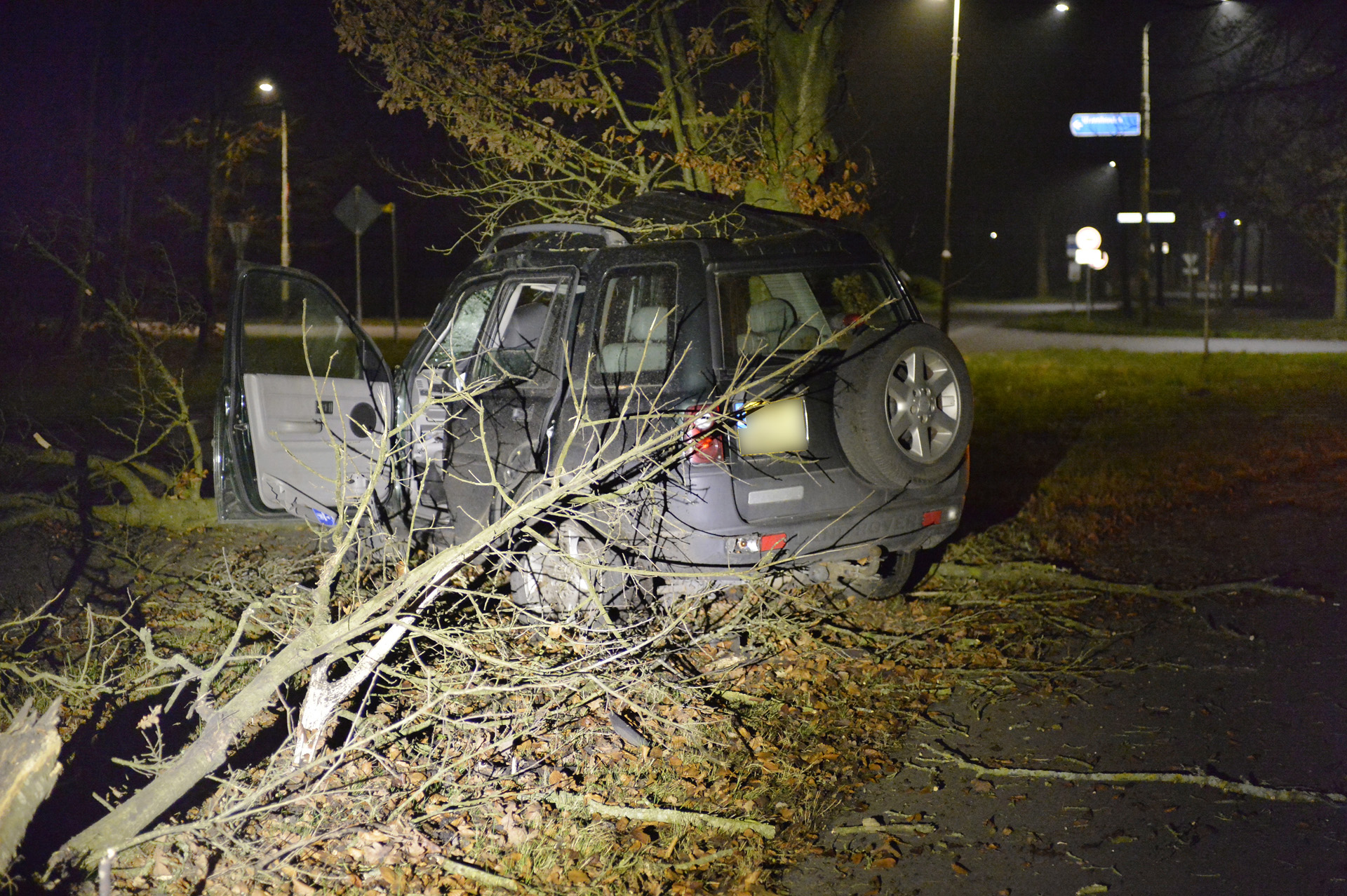 Automobilist gewond na botsing tegen boom en lantaarnpaal
