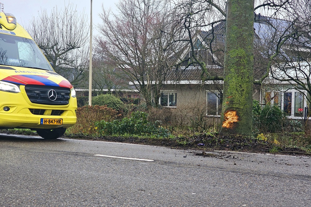 Een sportwagen botste door nog onbekende oorzaak tegen een boom en belandde vervolgens in een sloot. De bestuurder bleef ongedeerd en kon zelfstandig het voertuig verlaten.
