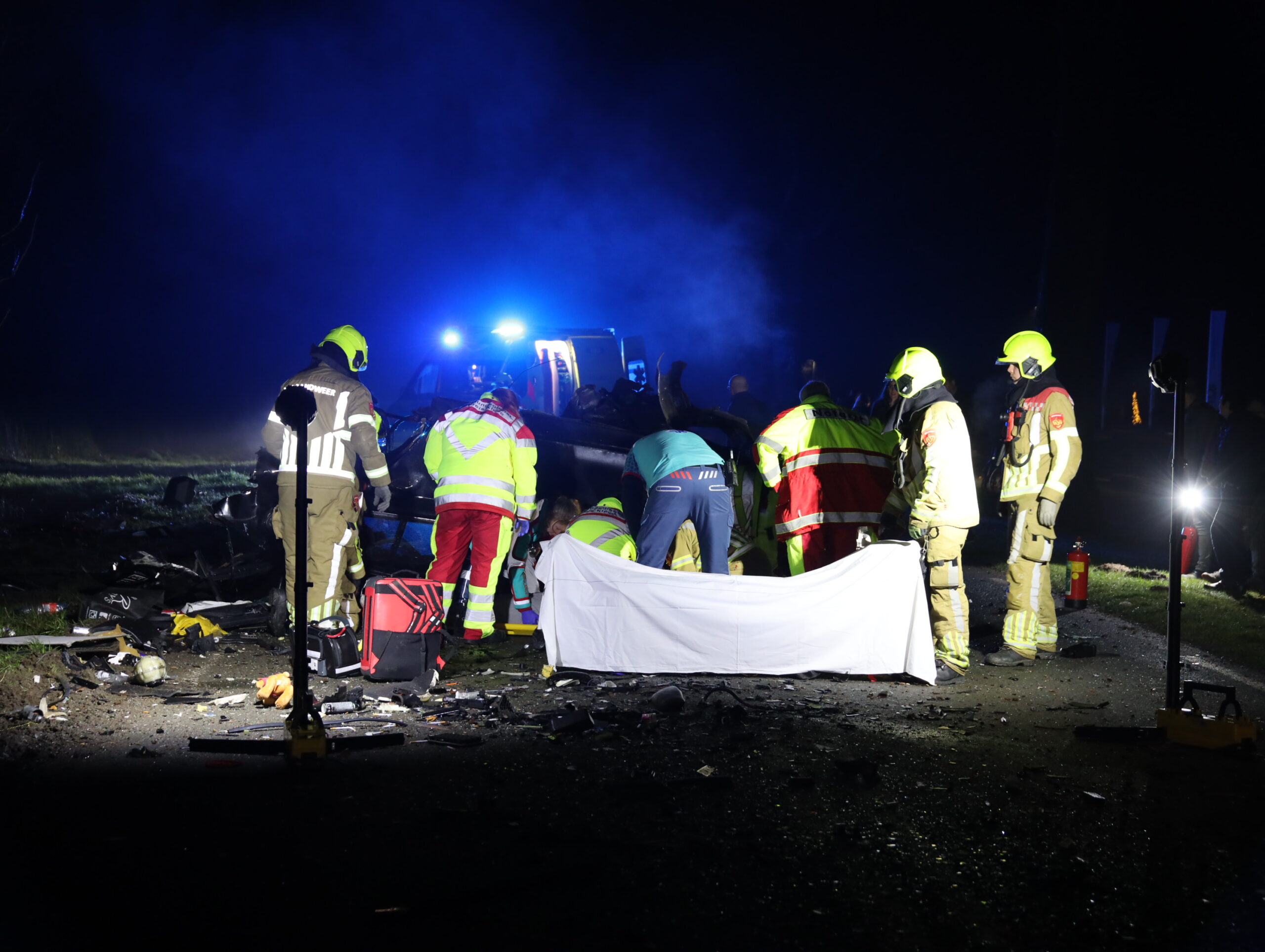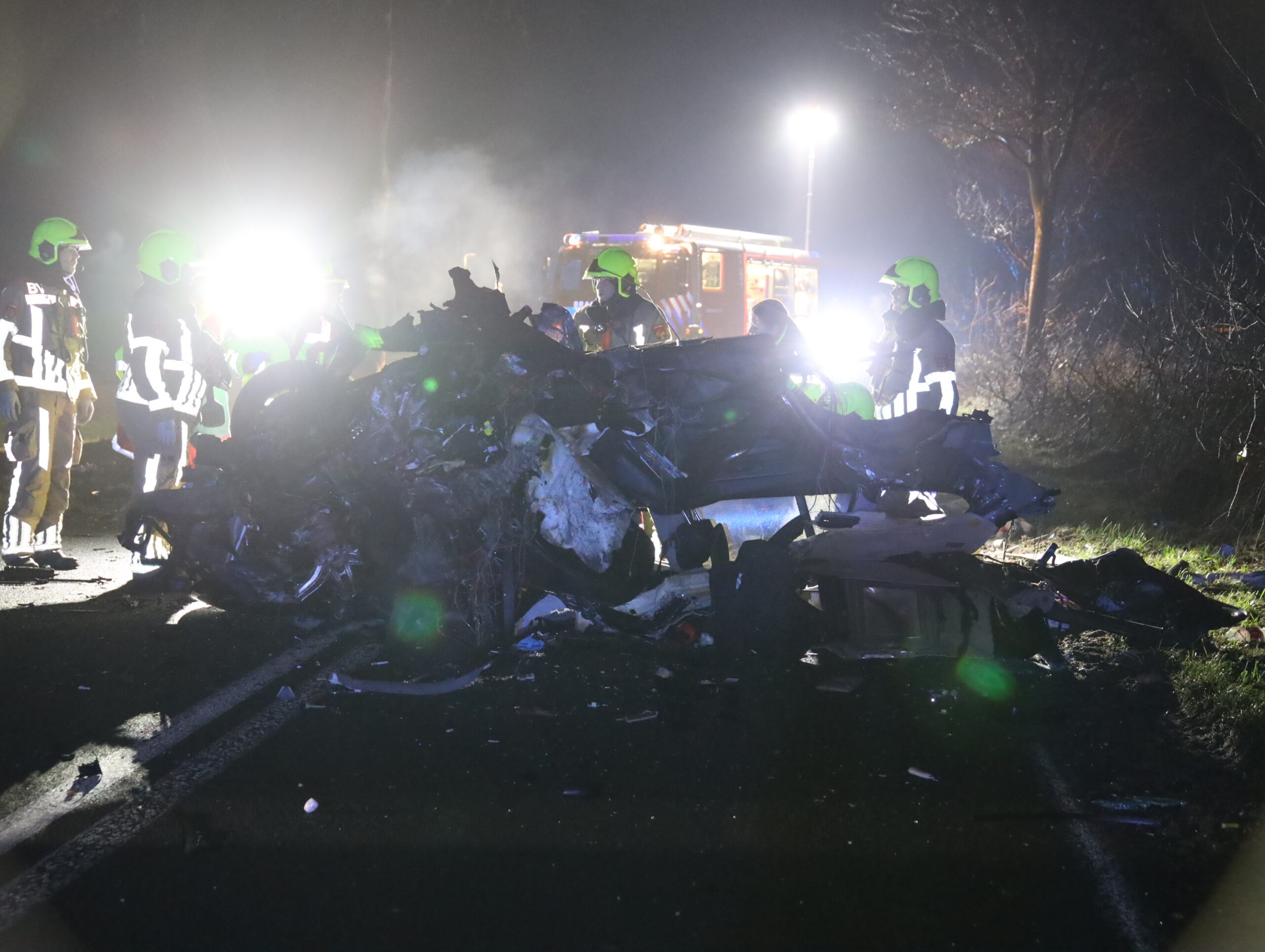 De bestuurder van een personenauto raakte rond 18.15 uur van de weg, ramde twee bomen en kwam tientallen meters verder tot stilstand. De auto brak in twee stukken en kwam op zijn kop op het wegdek terecht. De hulpdiensten, uit onder andere Duitsland, werden massaal ingezet voor de hulpverlening.