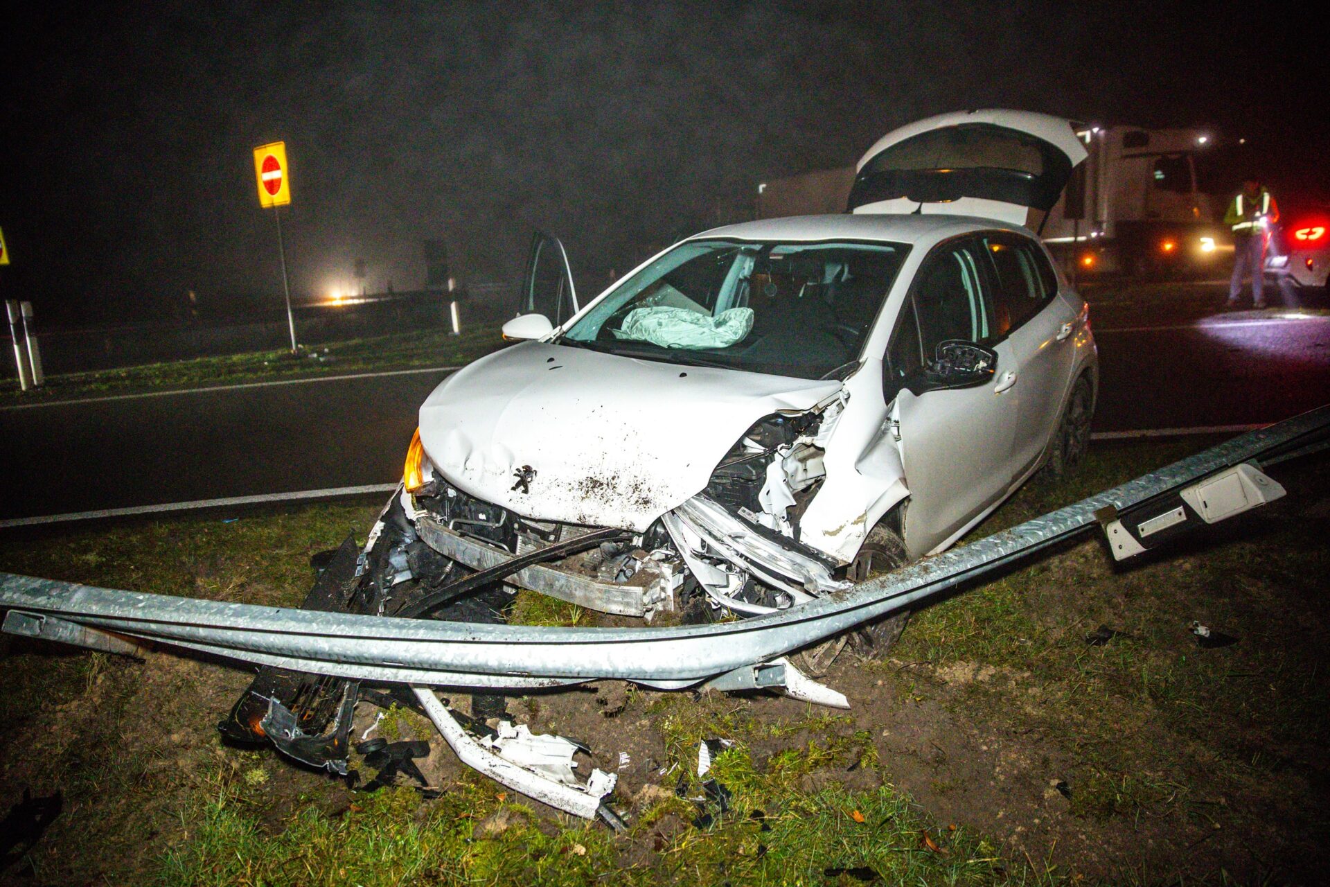 De bestuurder wilde rechtsaf slaan richting Nordhorn toen het misging. De twee inzittenden, beiden afkomstig uit Kampen, bleven ongedeerd. Zij verklaarden onderweg te zijn om vuurwerk uit Duitsland te halen.