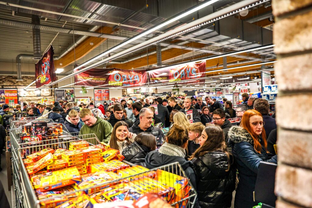 Veel vuurwerkliefhebbers trekken ook naar Duitsland voor hun aankopen. Vooral lagere prijzen en een ruimer assortiment trekken kopers over de grens. In plaatsen als Nordhorn stonden zaterdag al vroeg lange rijen bij supermarkten en tenten waar vuurwerk wordt verkocht. Hoewel experts waarschuwen dat het Nederlandse vuurwerk kwalitatief beter is, kiezen veel mensen voor goedkopere alternatieven.