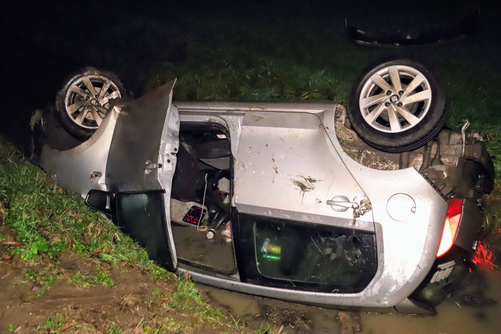 LIENDEN – Vrijdagavond rond 18.20 uur is op de Vogelenzangseweg in Lienden een auto op de kop in een sloot beland.