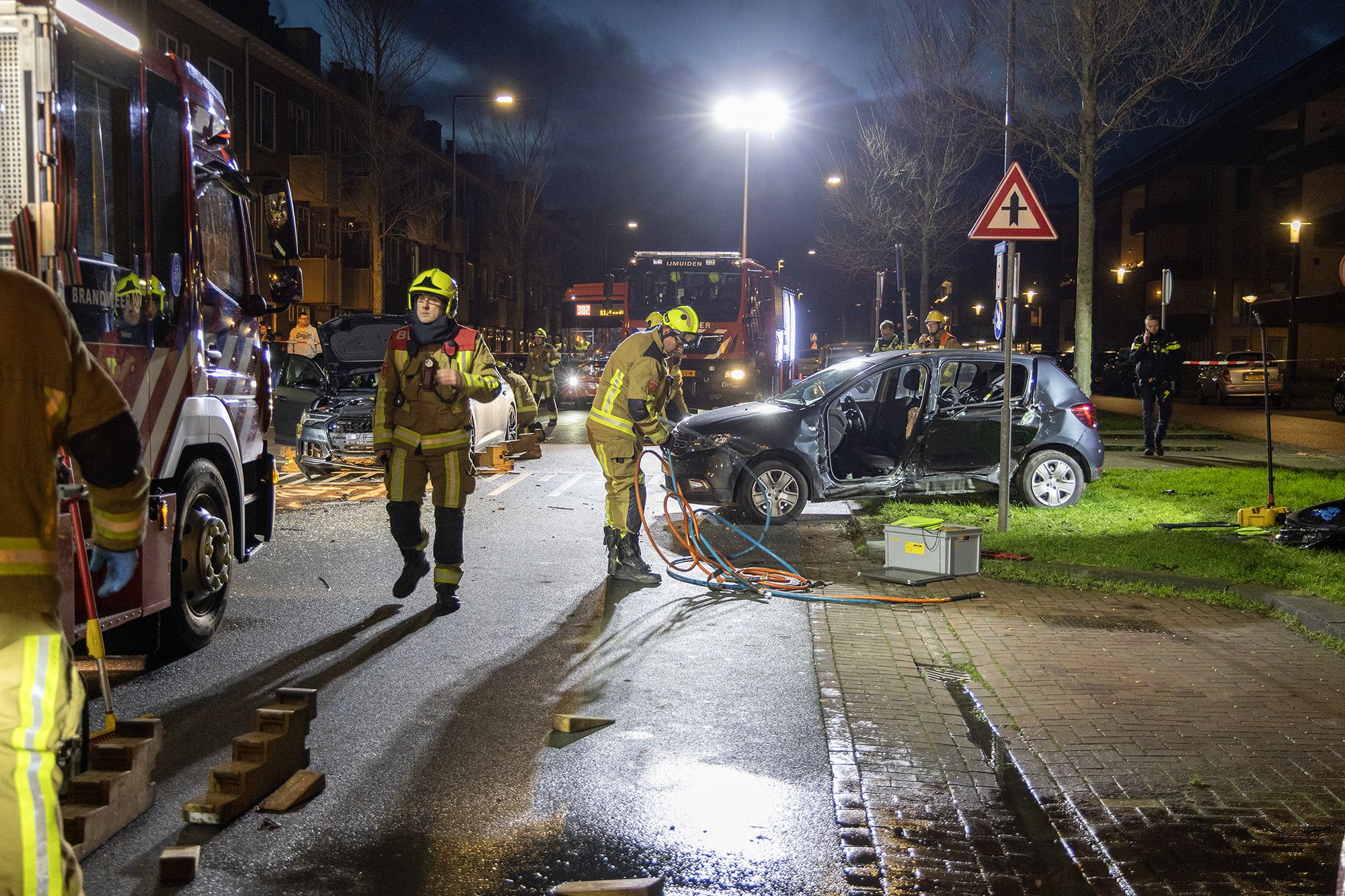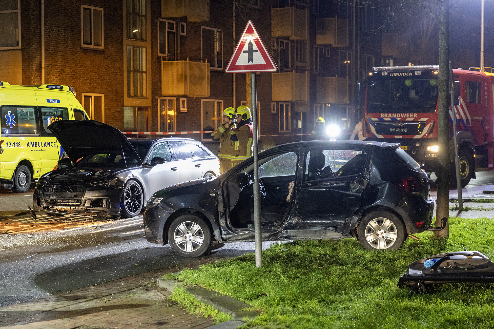 IJMUIDEN – Bij een zware aanrijding in IJmuiden zijn twee voertuigen met elkaar in botsing gekomen. Het ongeval gebeurde even na vijf uur op de Lange Nieuwstraat ter hoogte van de Eemstraat.