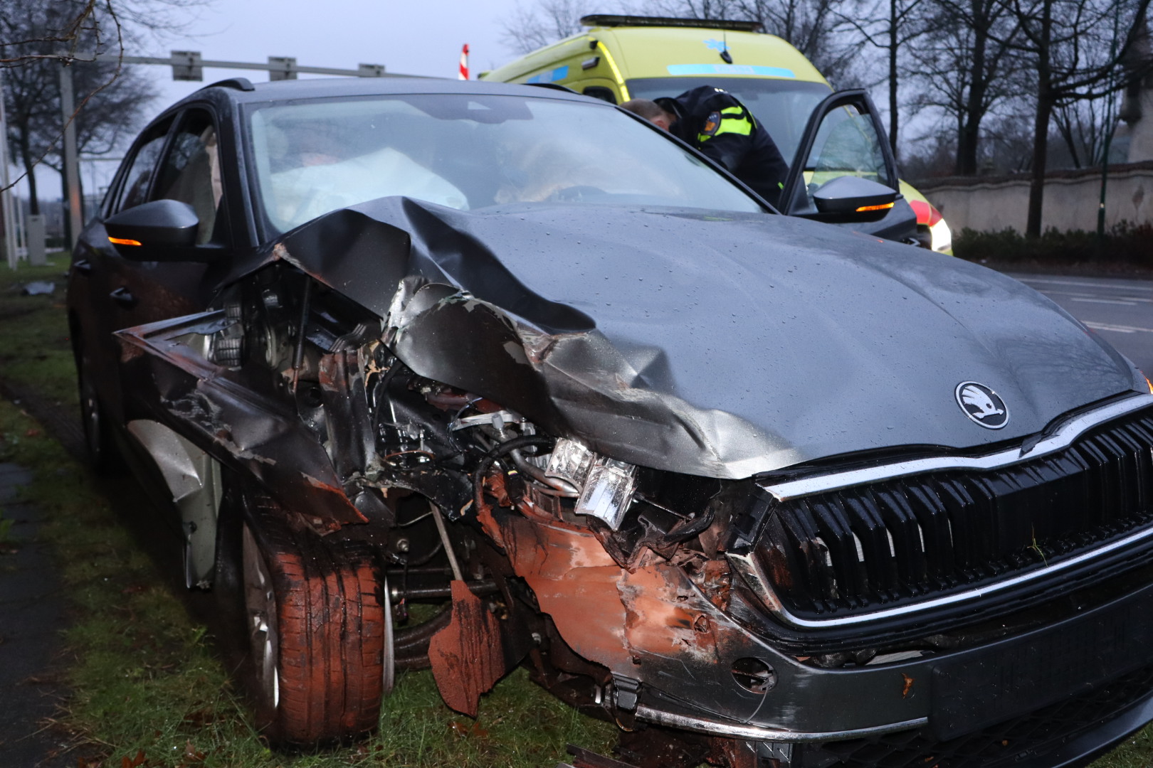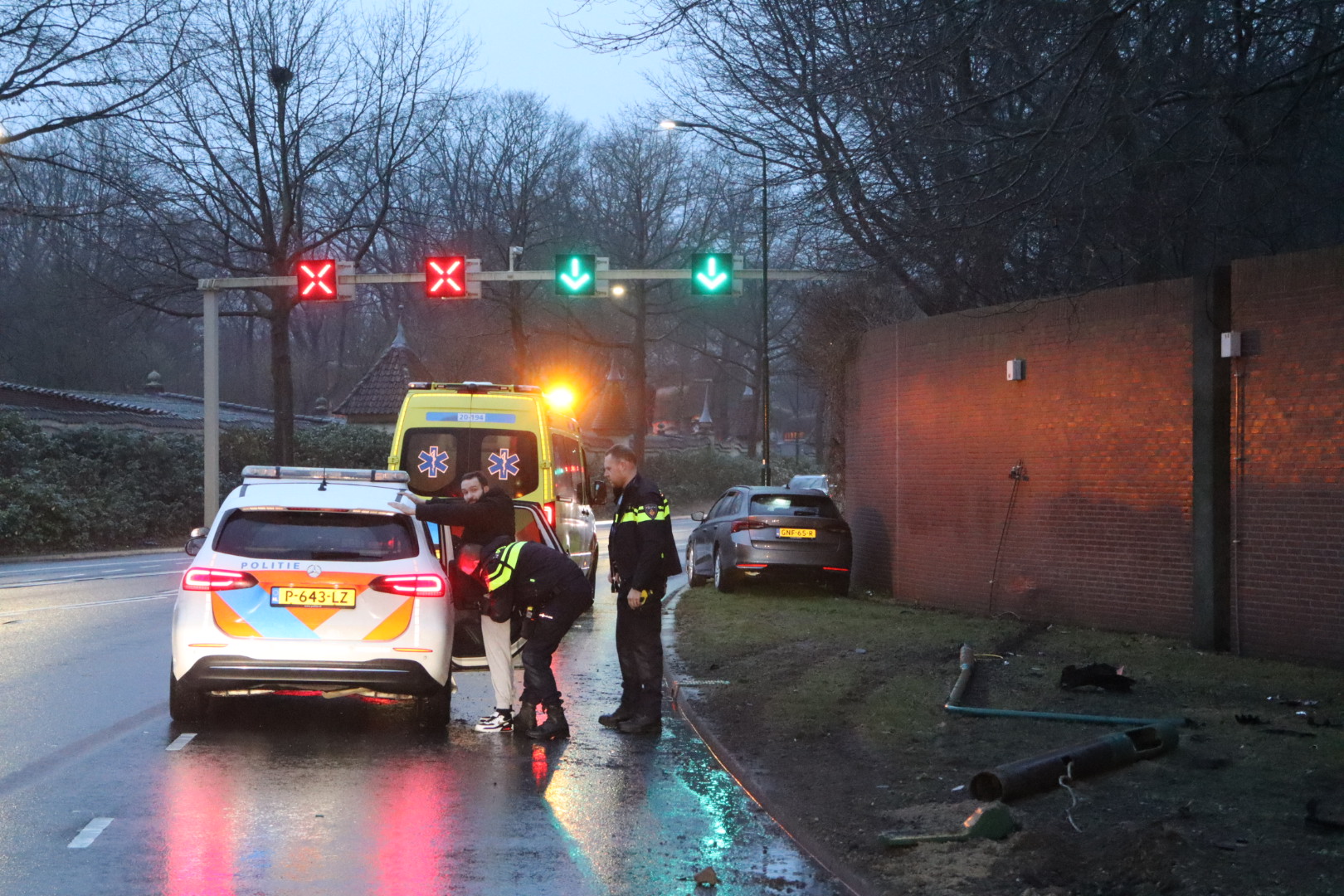 Een ambulance kwam ter plaatse om de bestuurder medisch te onderzoeken. Na controle is de bestuurder door de politie aangehouden. De oorzaak van het ongeval is nog onbekend.