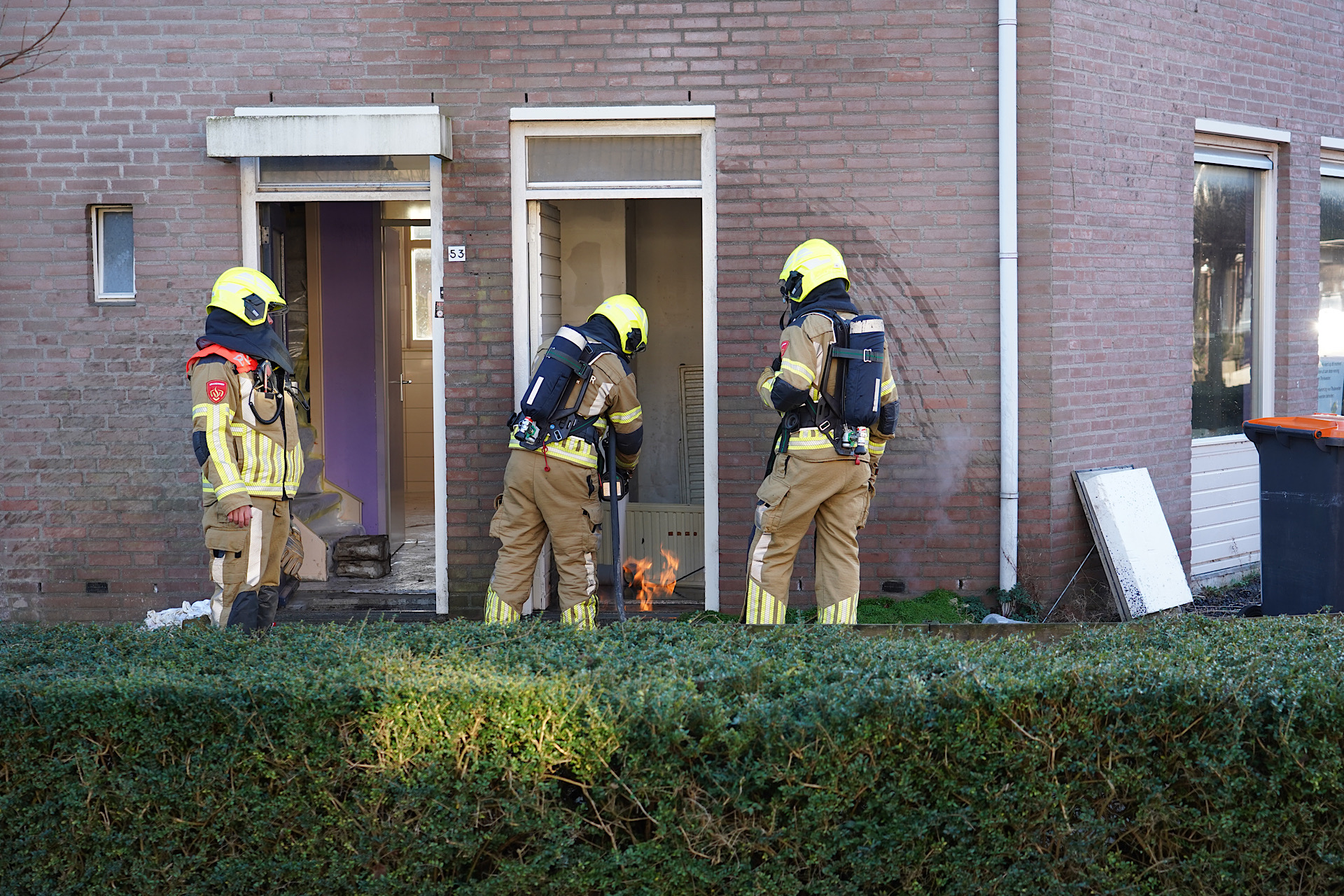 Om uitbreiding van de brand te voorkomen, heeft de brandweer de woning tijdens de brand gekoeld. Er raakte niemand gewond.