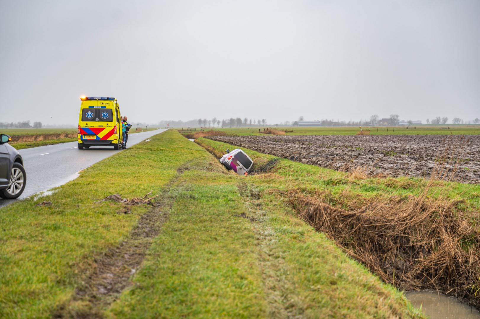 Bedrijfsbusje raakt van de weg en belandt in sloot