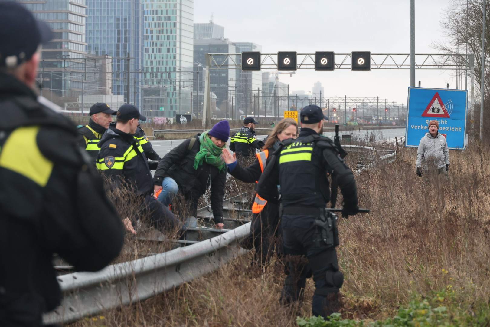 Klimaatdemonstranten XR voeren actie op A10, politie grijpt in