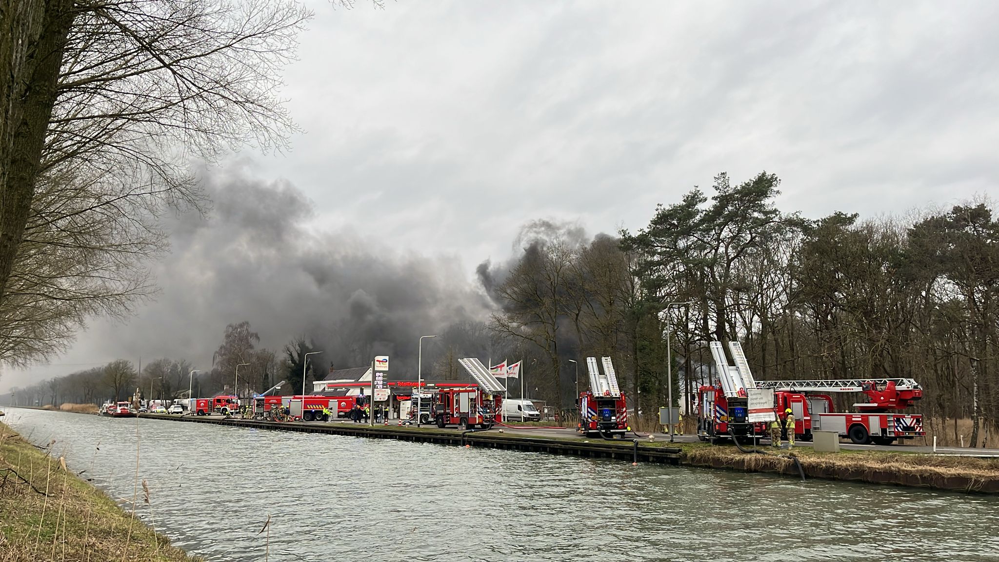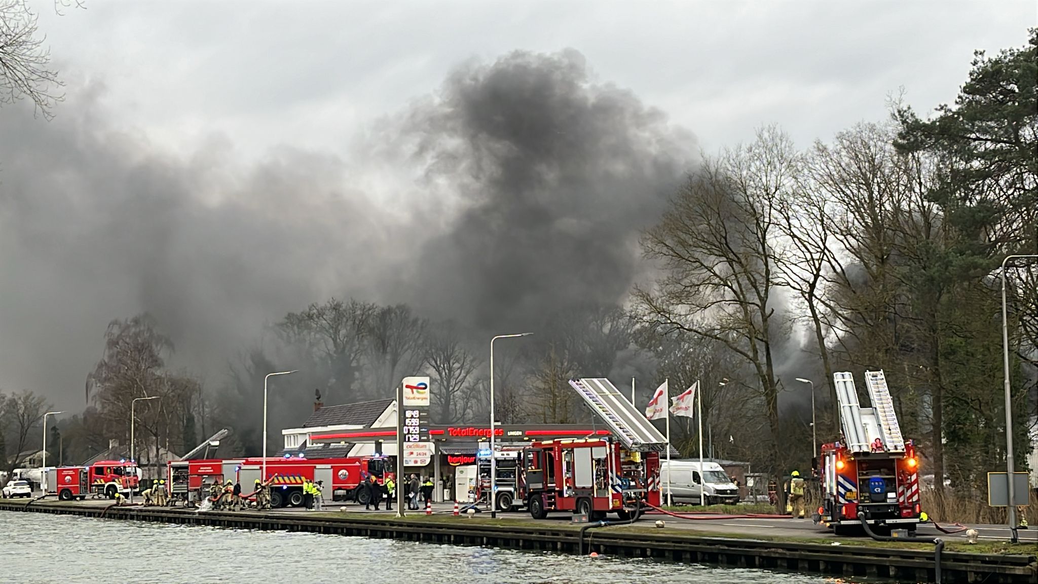 Grote brand in loods bij tankstation, brandweer groots uitgerukt