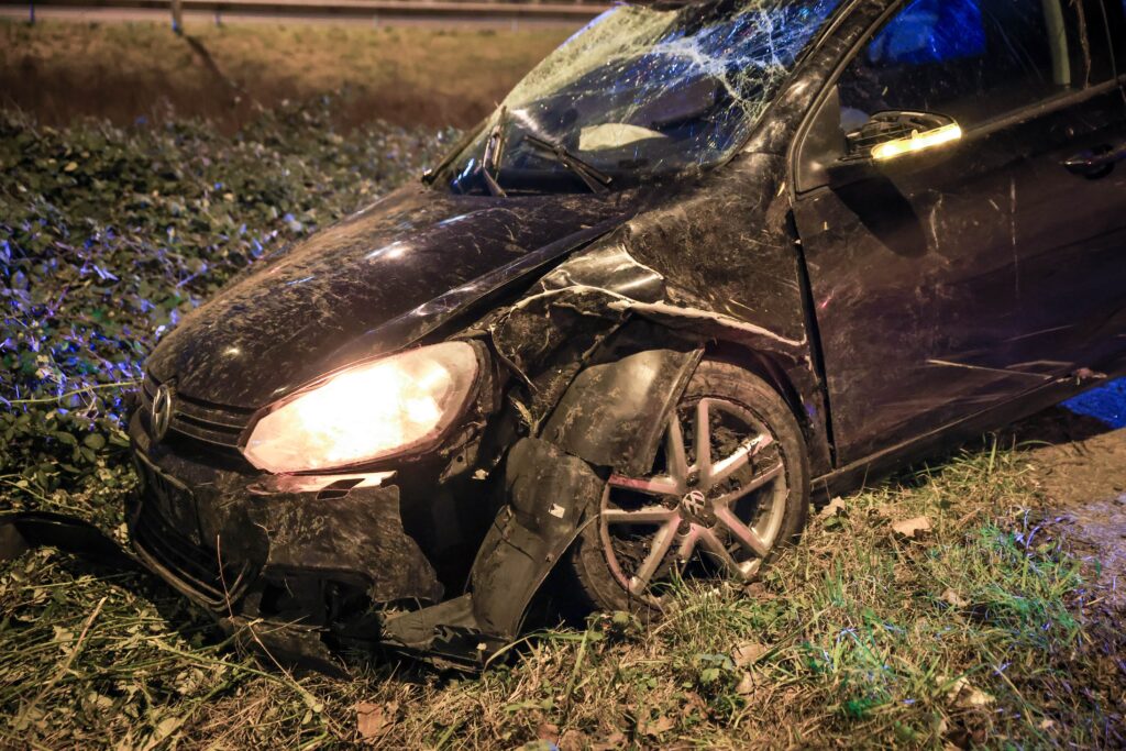 Auto belandt op zijkant tussen oprit en afrit van snelweg
