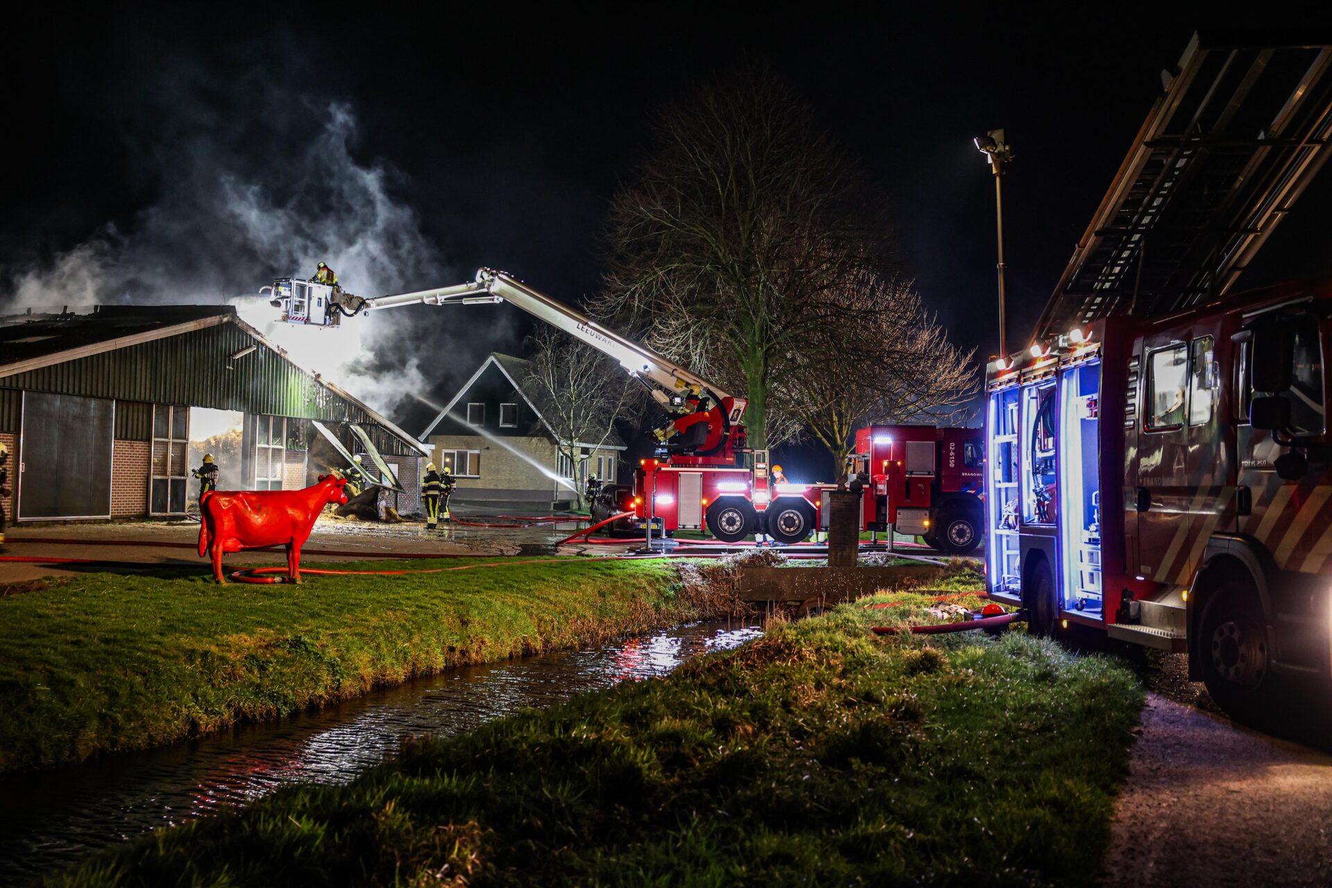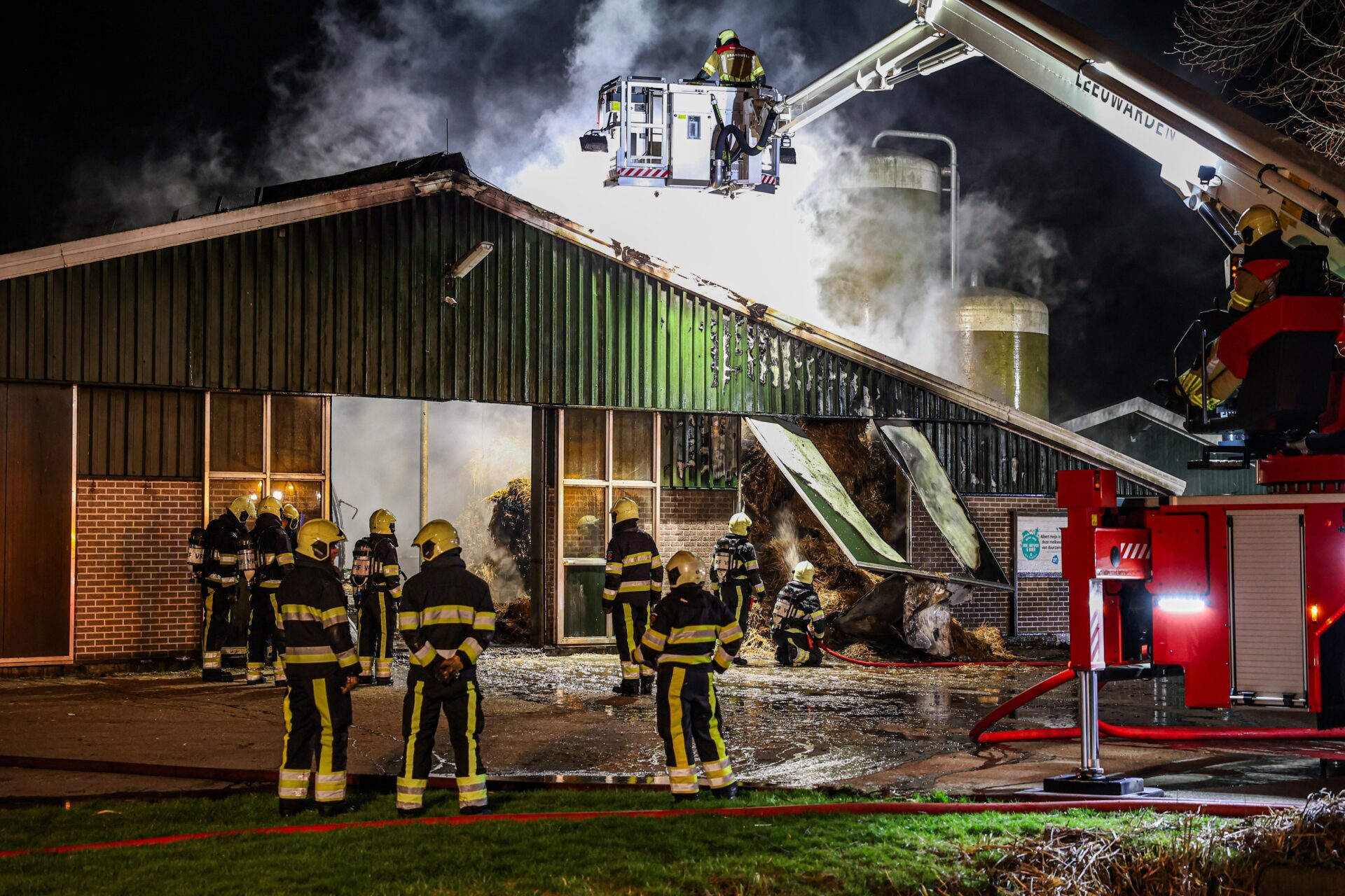 ALDEBOARN – In de nacht van vrijdag op zaterdag is een grote brand uitgebroken in een stal van een agrarisch bedrijf aan de Fjurlânswei in Aldeboarn. De brandweer heeft groots opgeschaald en is bezig met bluswerkzaamheden.