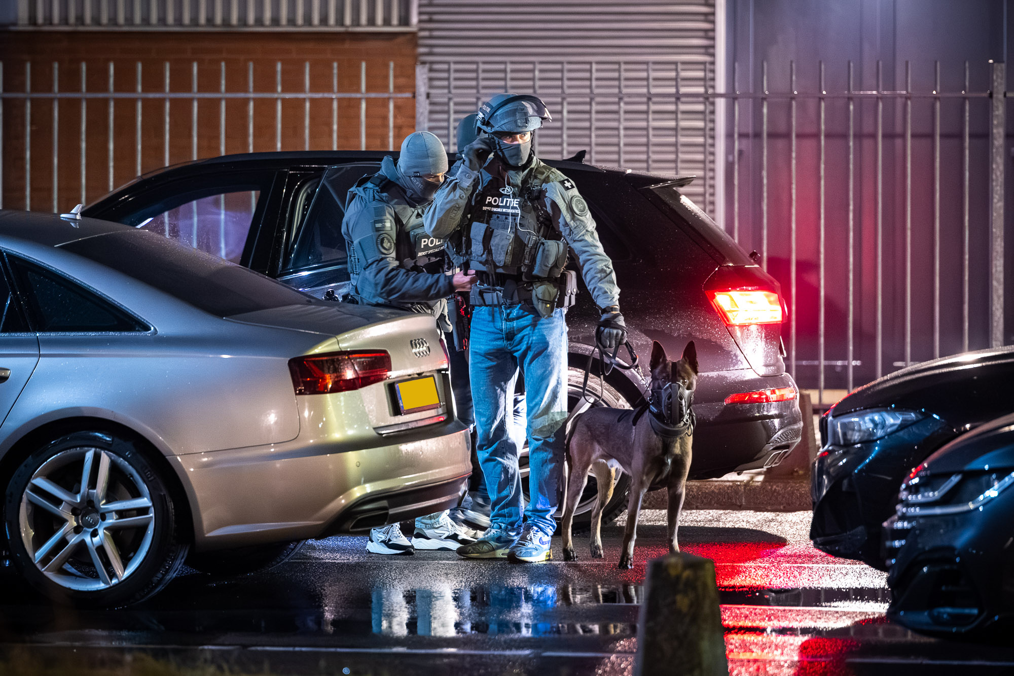 Naast politie is ook de douane en de Koninklijke Marechaussee aanwezig. De aanwezige politieagenten dragen kogelwerende vesten en ook de Dienst Speciale Interventies (DSI) is ter plaatse.