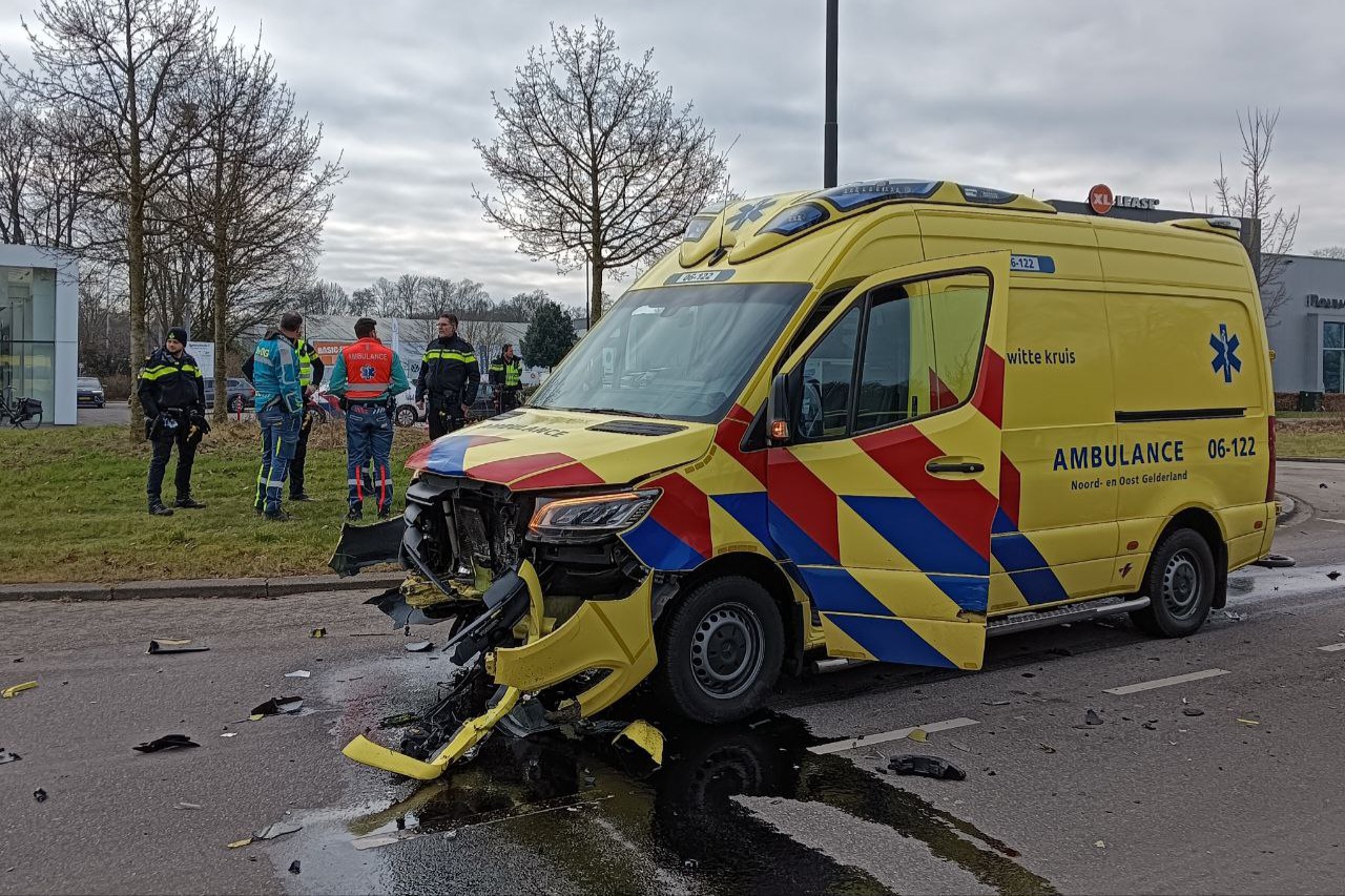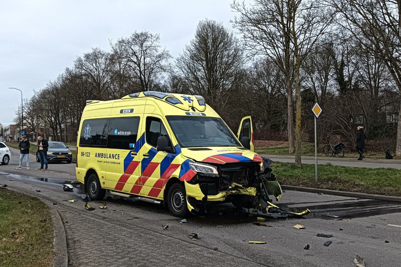 APELDOORN – Op zondagochtend zijn drie auto’s, waaronder een ambulance, beschadigd geraakt bij een botsing op de Laan van Kuipershof, ter hoogte van het Ambachtsveld. De ambulance botste frontaal op een auto. Er raakte niemand gewond.