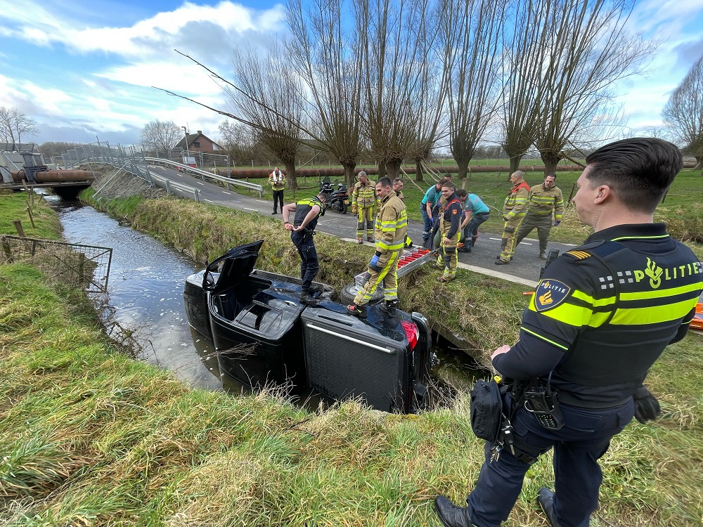 Pick-up belandt op zijkant in sloot, oudere man gewond - 112 Nederland