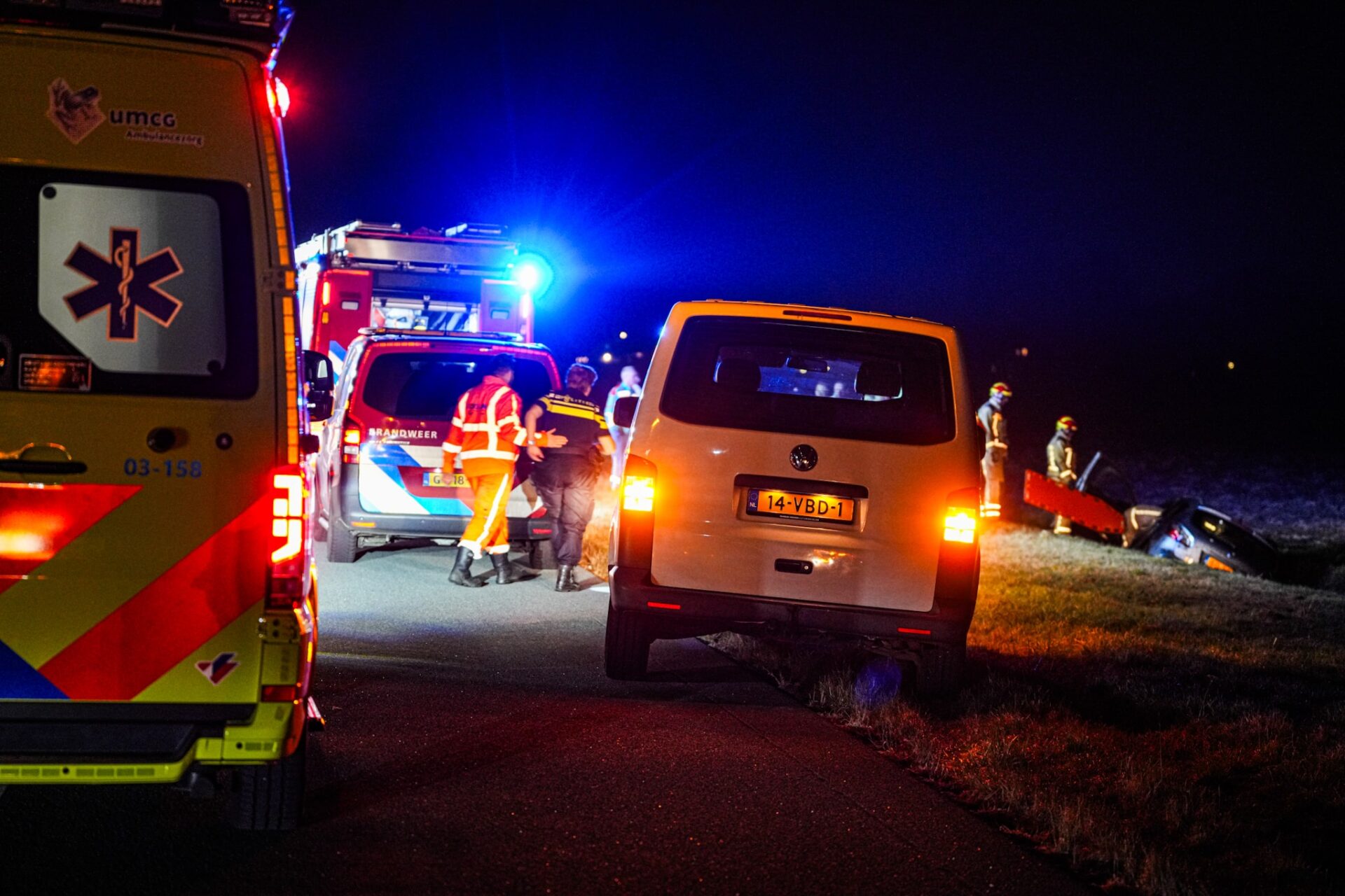 Beide betrokkenen worden voor verdere controle overgebracht naar het Scheper Ziekenhuis in Emmen. De weg is gedeeltelijk gestremd, waarbij het verkeer over één rijstrook kan passeren.