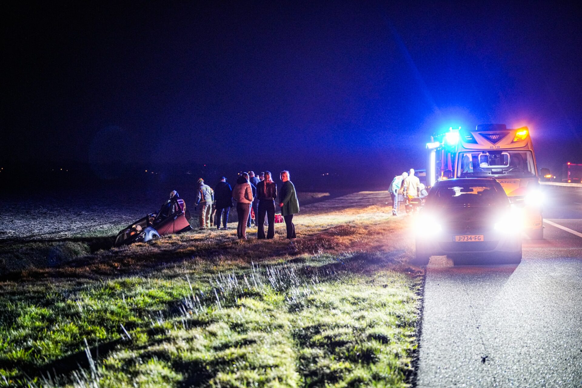 ERICA – Zondagavond rond 20:00 uur is een auto van de weg geraakt en in een droge sloot beland langs de A37 bij Erica, ter hoogte van hectometerpaal 31,8. In het voertuig zat een ouder echtpaar.