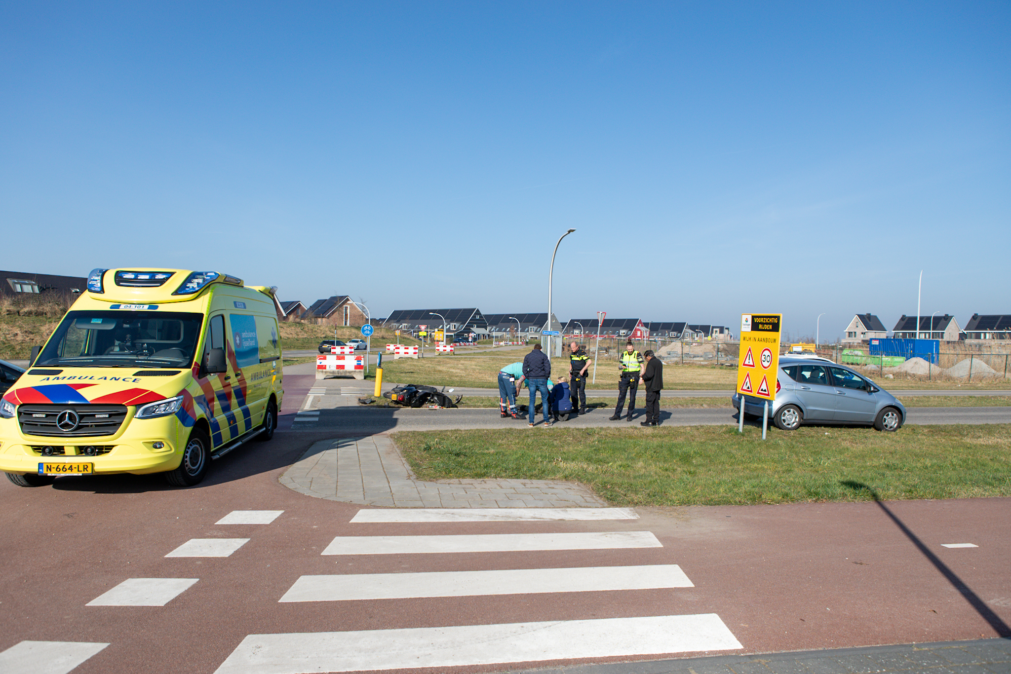 ZWOLLE – Op de rotonde van de Stadshagenallee met de Breezichtlaan in de Zwolse wijk Stadshagen is zondagmorgen een scooterrijder gewond geraakt bij een aanrijding met een auto. De automobilist wilde de rotonde verlaten richting de Breezichtlaan, terwijl de scooterrijder op het bromfietspad reed.