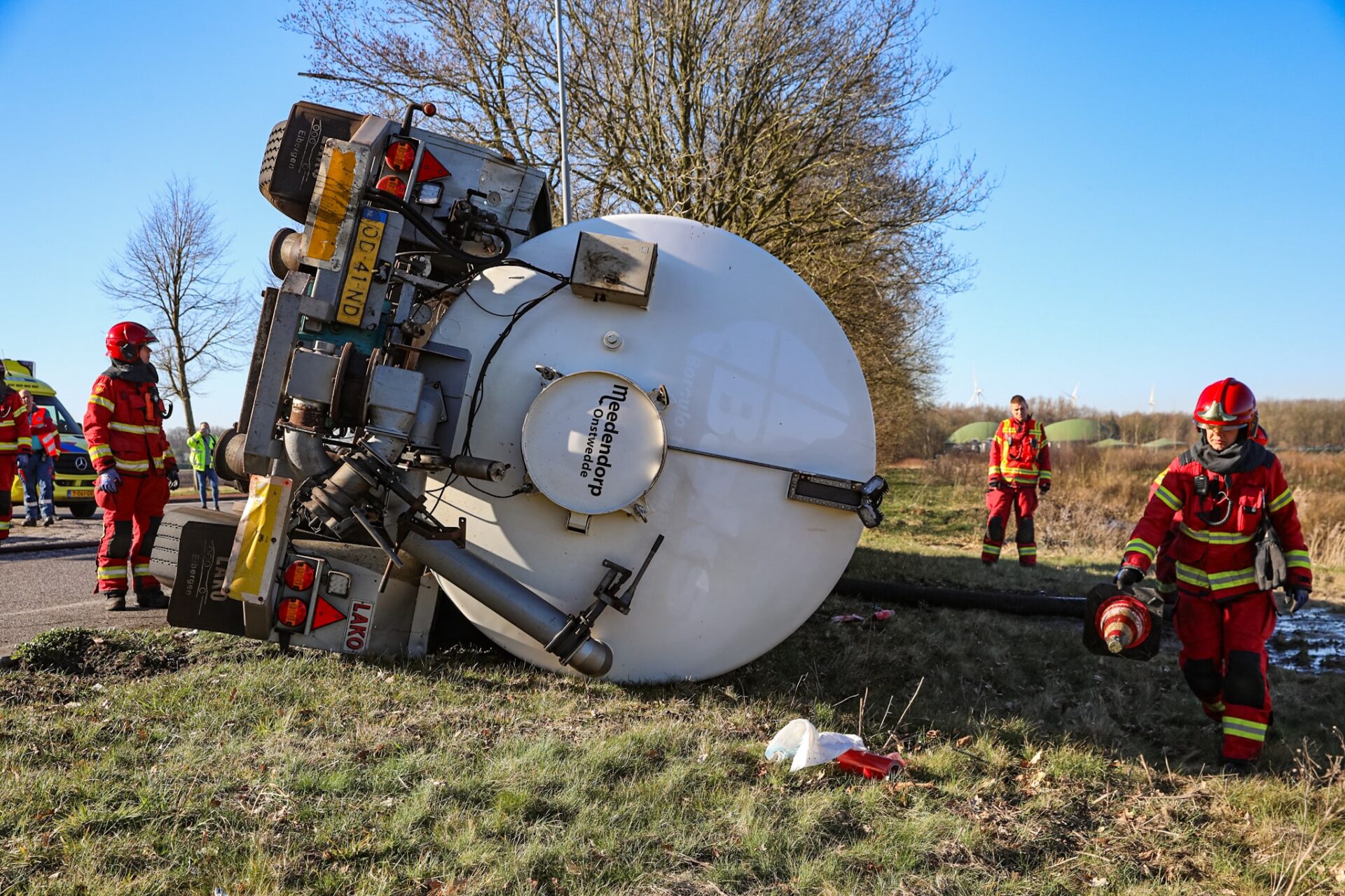 Door de kanteling liep mest in een sloot, wat voor flinke stankoverlast zorgde. De brandweer heeft een leiding aangelegd om de mest gecontroleerd naar een weiland te laten stromen. De eigenaar van het voertuig kwam ter plaatse om de schade te inspecteren. De weg richting Stadskanaal blijft nog enkele uren afgesloten voor bergingswerkzaamheden. Hoe lang dit zal duren, is nog niet bekend.