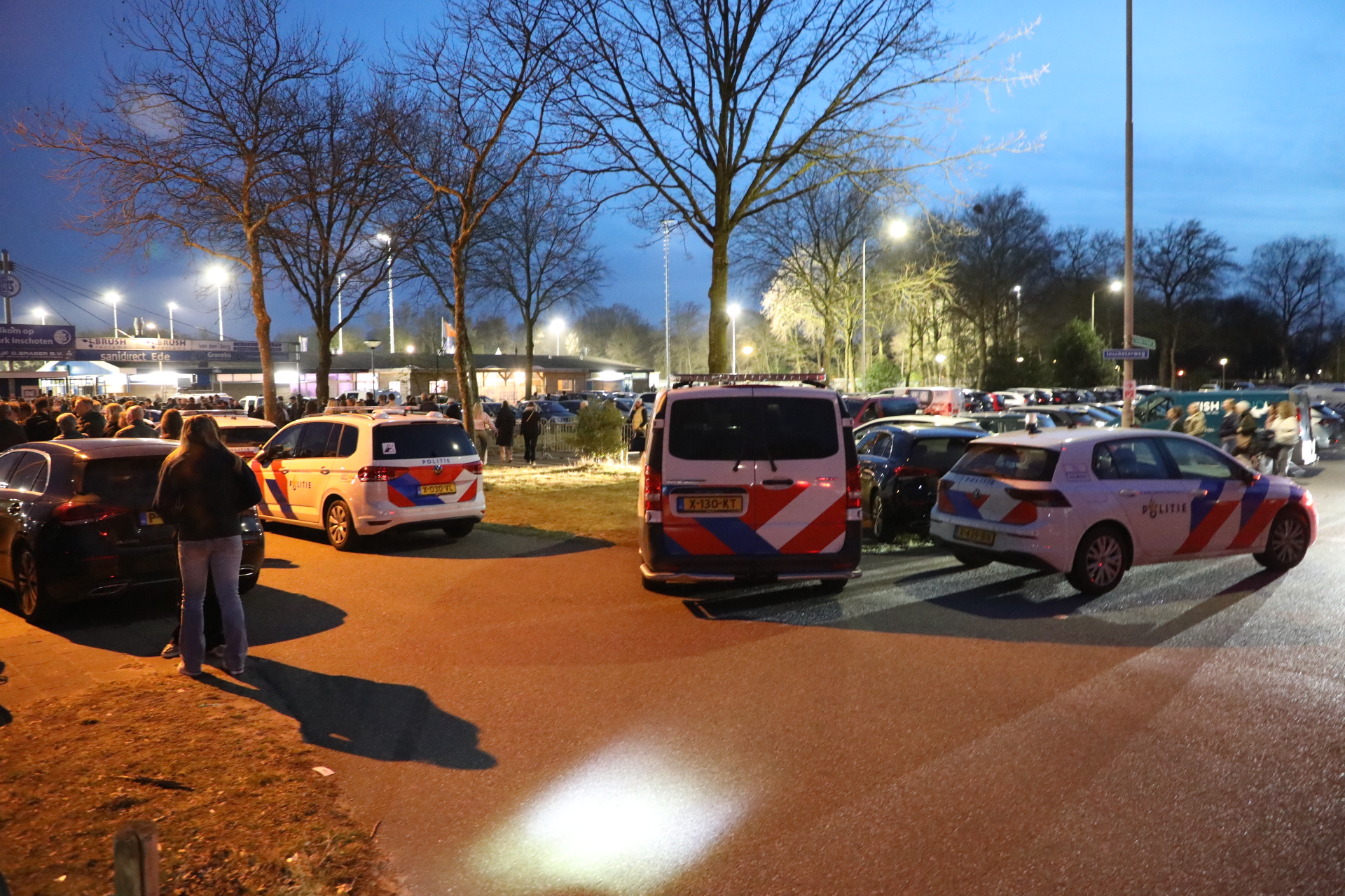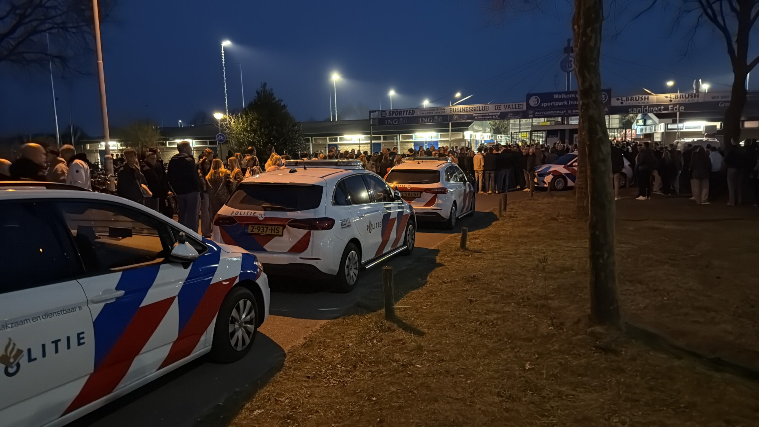 EDE – Bij de voetbalderby tussen DTS Ede en Bennekom is vrijdagavond grootschalig politie-inzet nodig geweest. Zeker twintig eenheden kwamen ter plaatse nadat supporters zonder toegangskaart probeerden het sportpark te betreden. Vanwege de onrust werd de aftrap van het duel, dat oorspronkelijk om 20.00 uur zou beginnen, uitgesteld tot 20.45 uur.