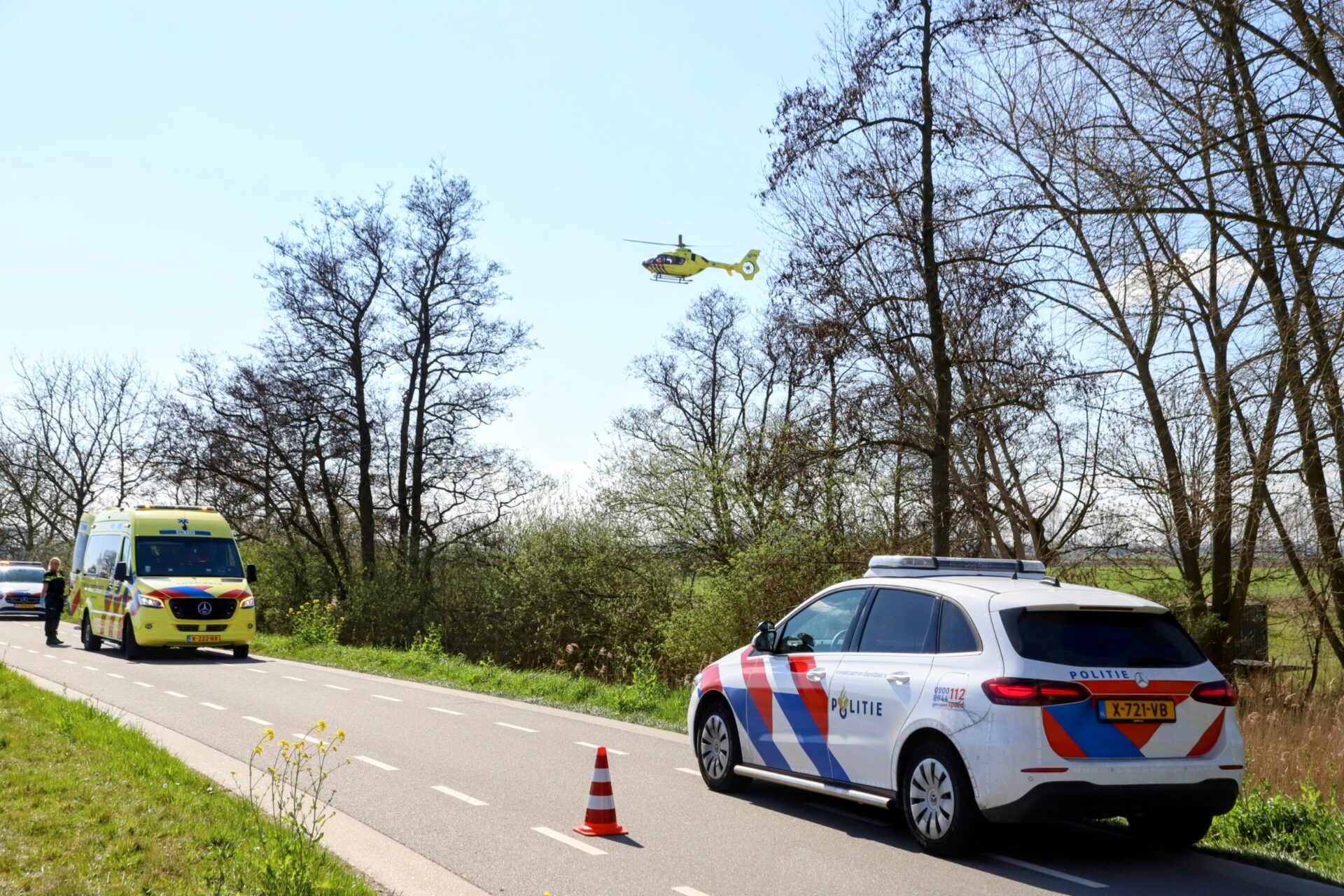 Een man op een wielrenfiets kwam door nog onbekende oorzaak ten val. De hulpdiensten, waaronder een traumahelikopter, werden opgeroepen. De helikopter hoefde uiteindelijk niet ingezet te worden en keerde kort na aankomst terug.