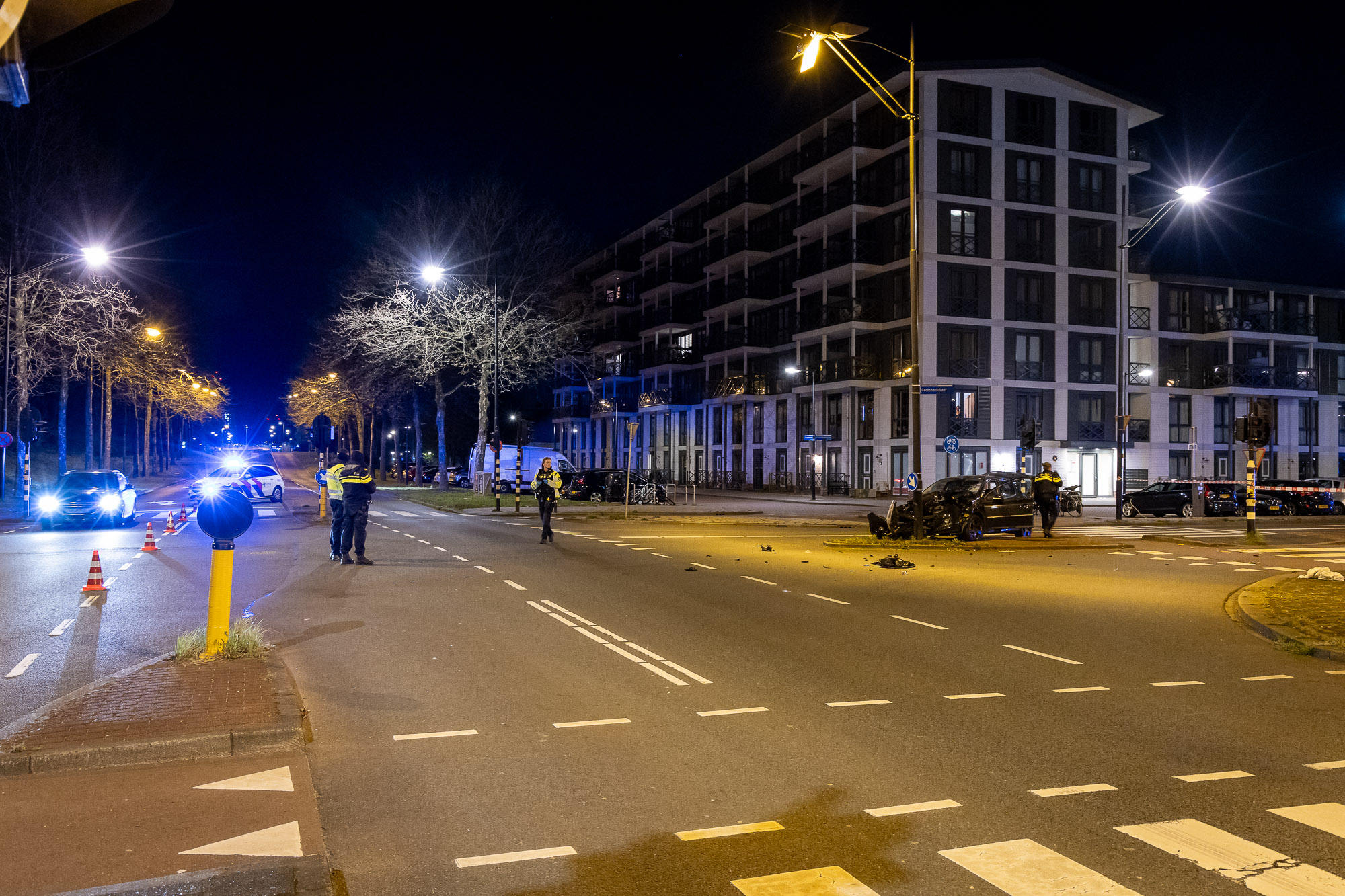 Een politietakelde het beschadigde voertuig af. De kruising bleef langere tijd afgesloten voor verkeer. Er wordt vermoed dat er onderzoek zal plaatsvinden naar de oorzaak van het incident.