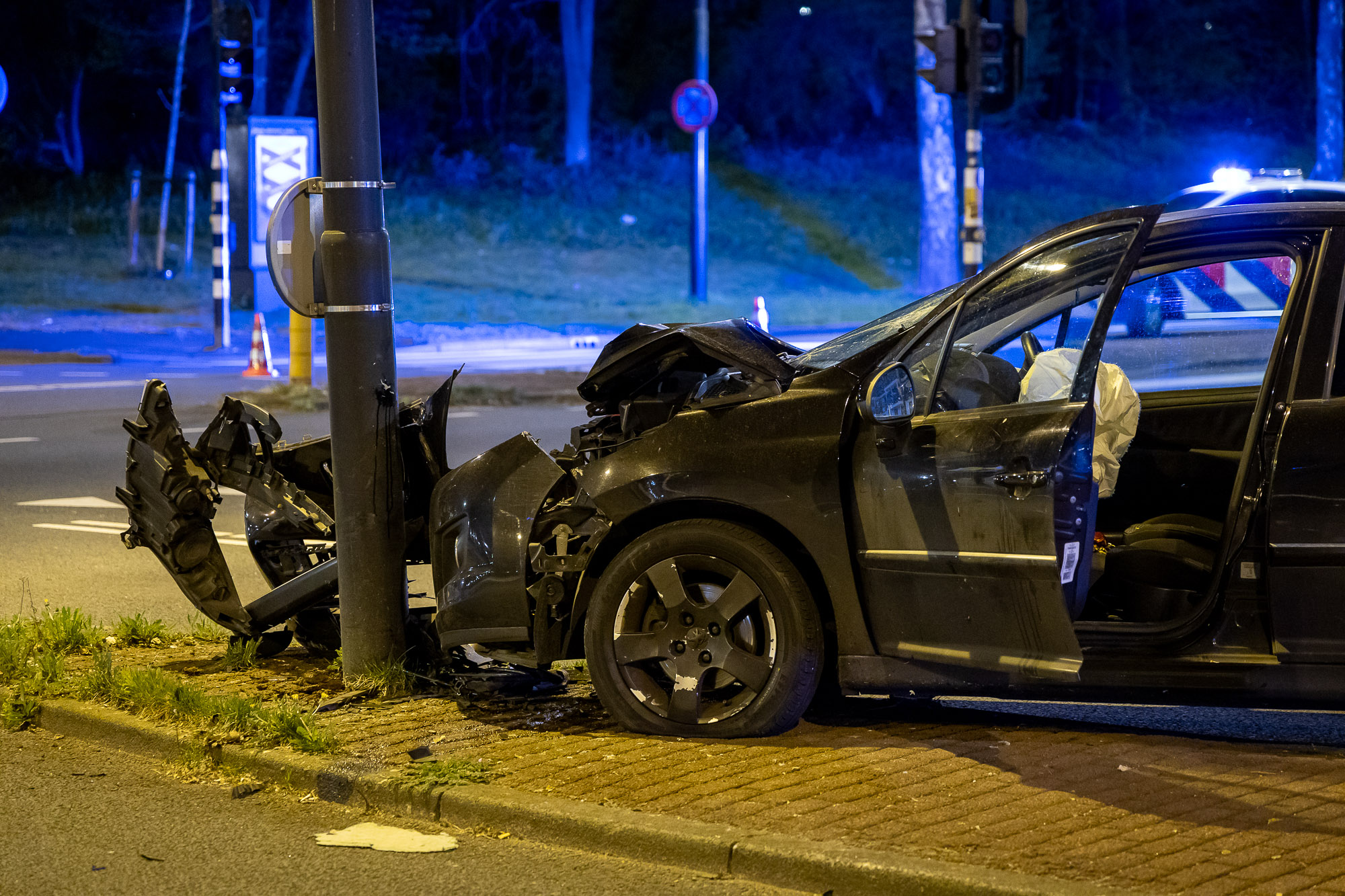 Auto ramt lantaarnpaal, bestuurder met spoed naar ziekenhuis
