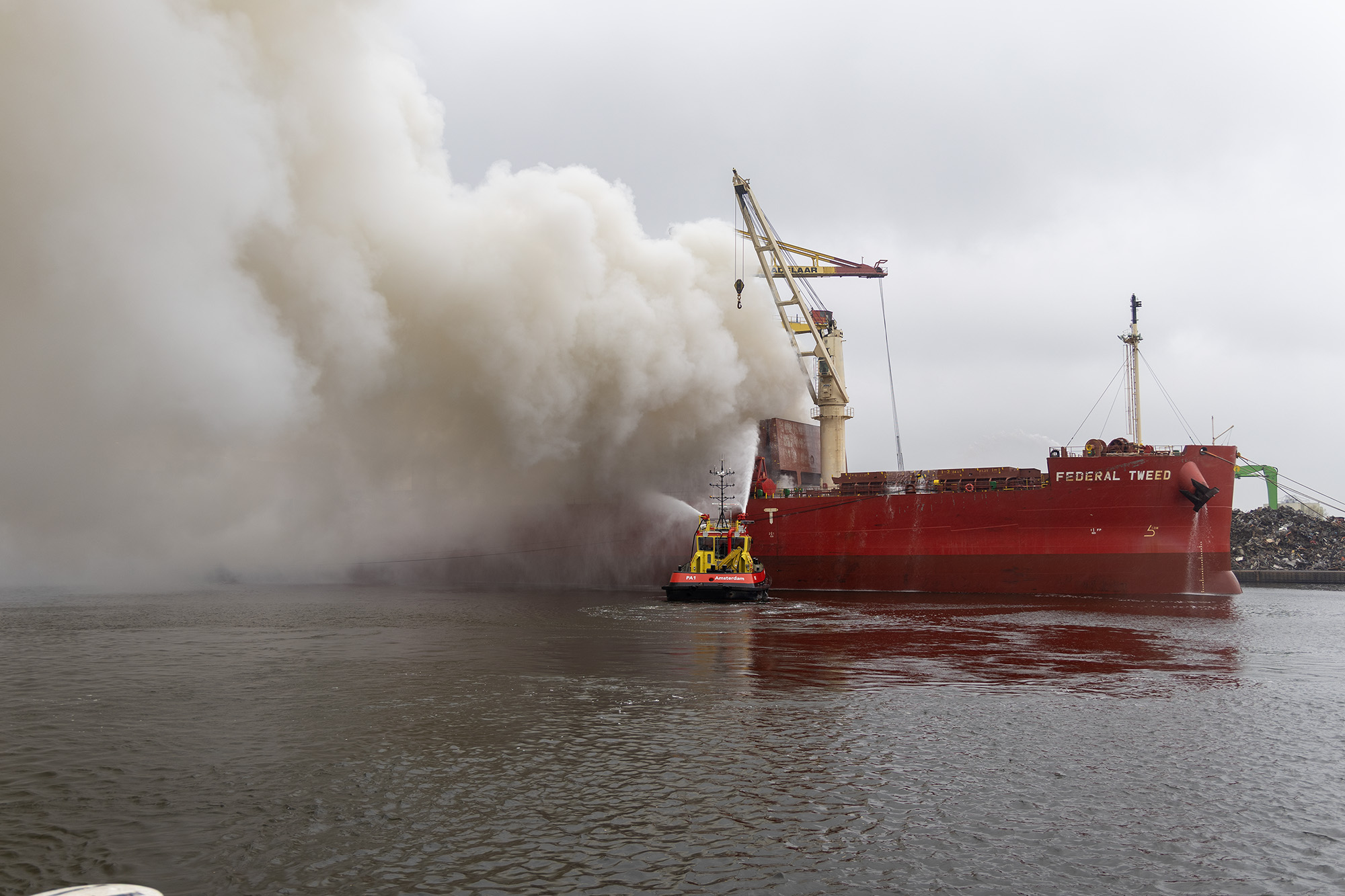 Hardnekkige brand in schip met schroot veroorzaakt rookoverlast tot kilometers verderop