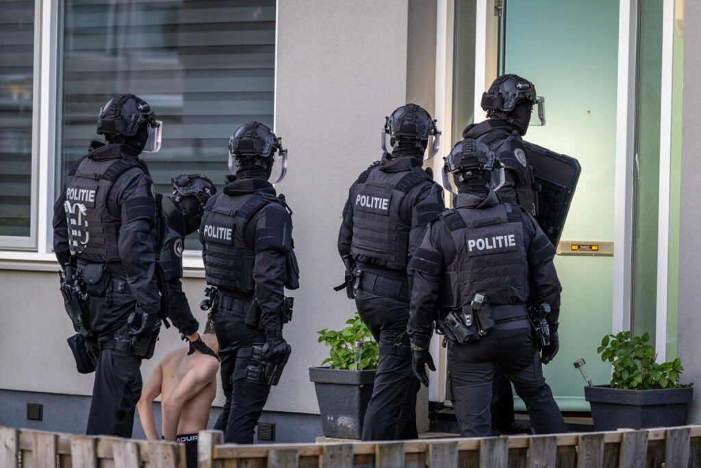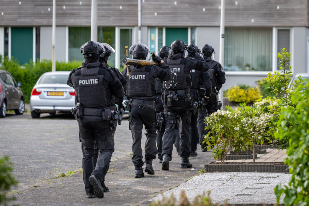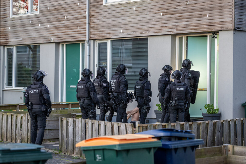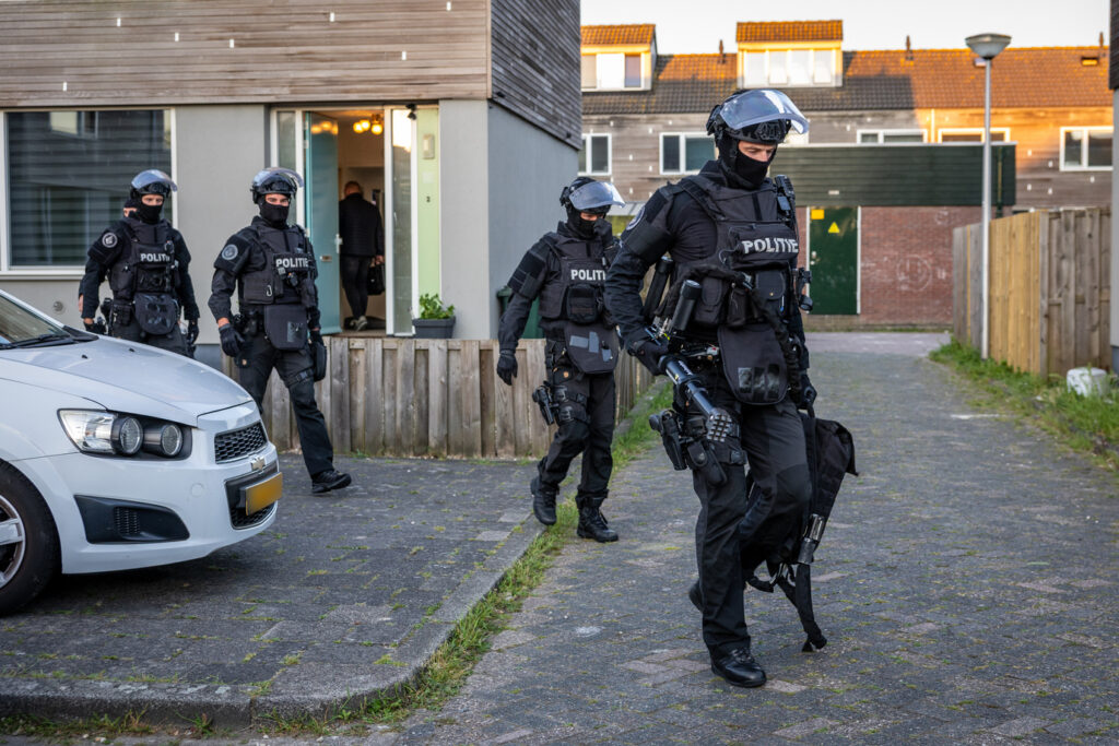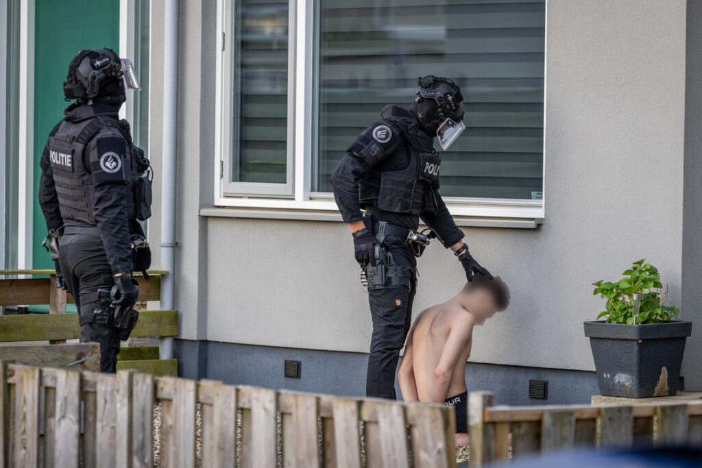 Het team voerde de inval uit volgens protocol, maar nog voordat de deur geforceerd kon worden, werd deze geopend door de verdachte, vermoedelijk na het zien van camerabeelden. Op dat moment rende de hond van de man richting de agenten. Hoewel de situatie kort voor opschudding zorgde, bleek het dier niet agressief en vluchtte snel terug de woning in. De verdachte werd daarop aangehouden en geboeid afgevoerd.