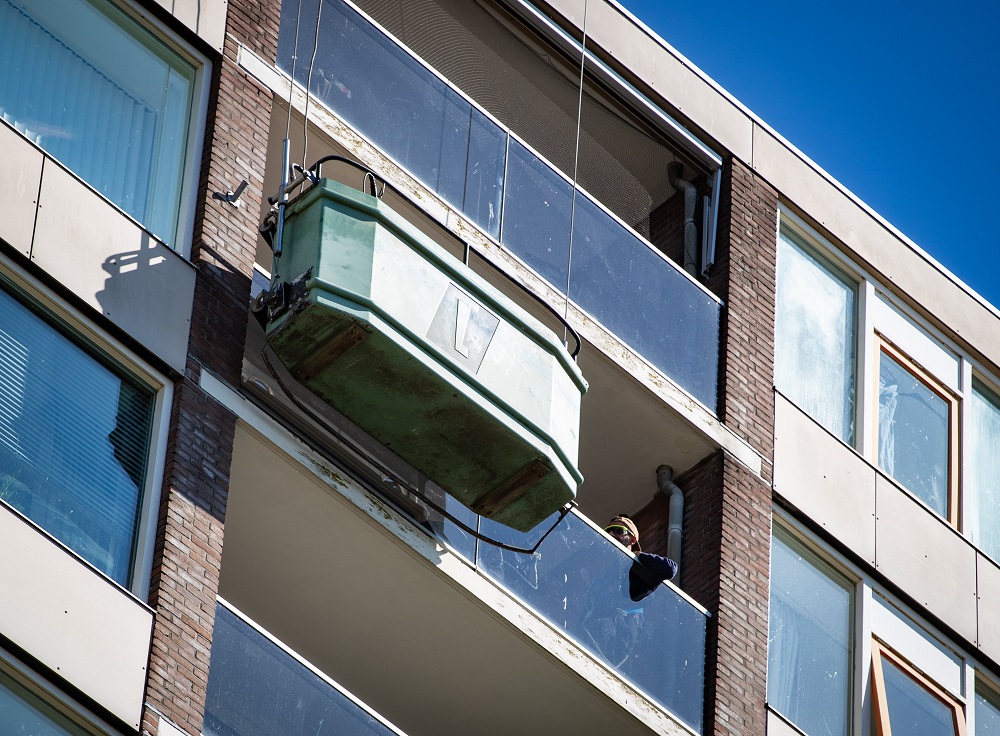 ZWOLLE – Twee mannen zijn dinsdagochtend vast komen te zitten in een glazenwassersbakje bij een flat aan de Monteverdilaan, nadat de stroomkabel van hun werkbak beschadigd raakte.