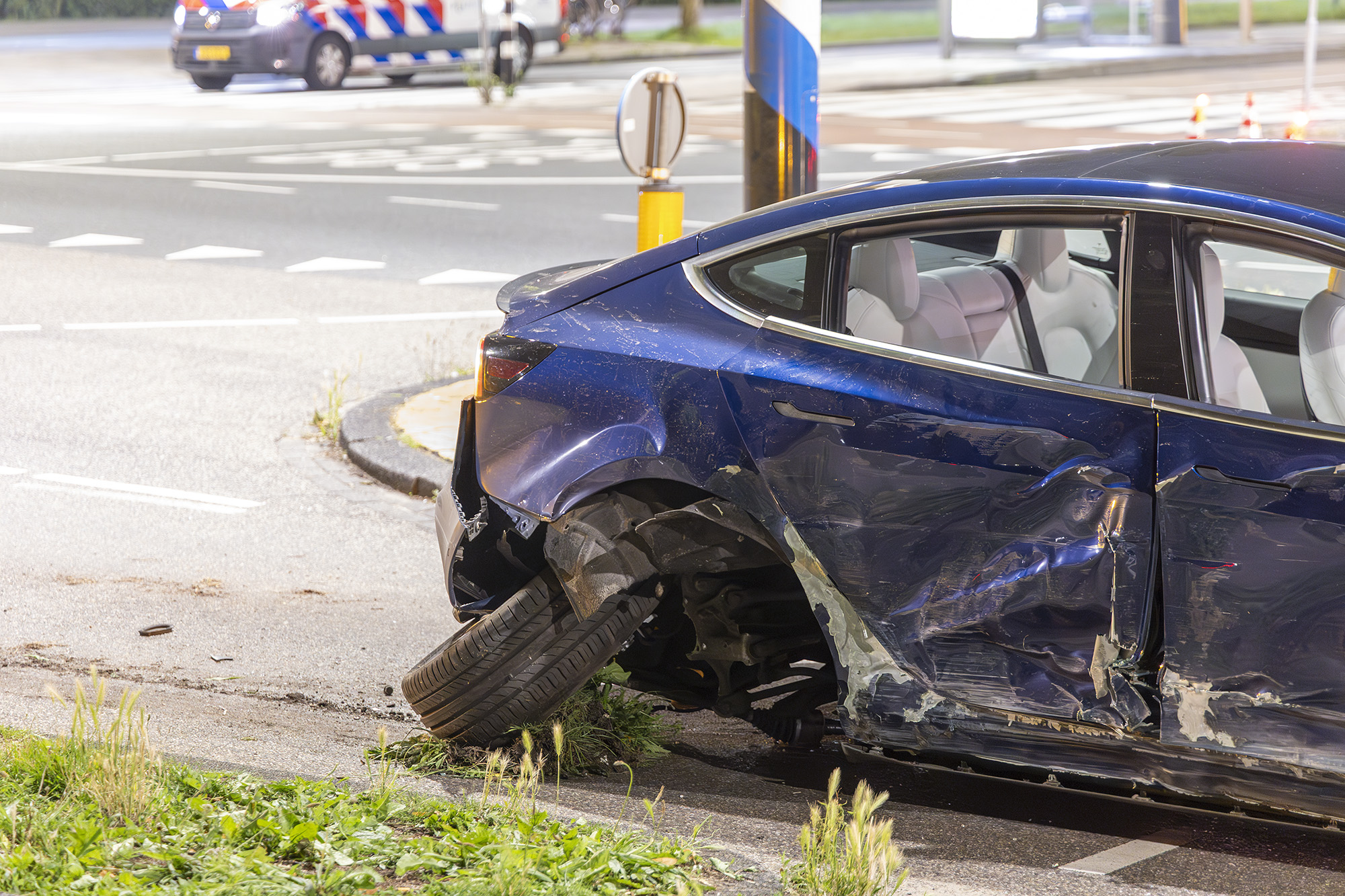 AMSTERDAM – Bij een zwaar ongeval met een Tesla is maandagavond in ieder geval een persoon gewond geraakt.