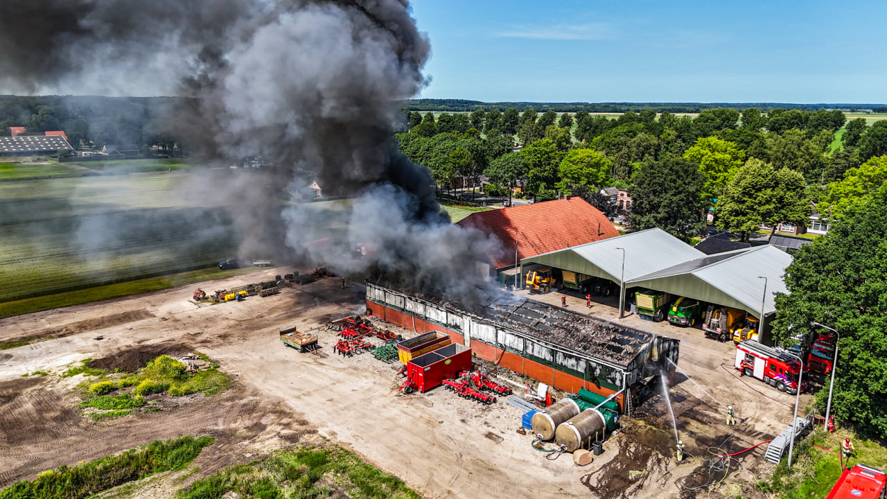 Boven het gebied zijn grote zwarte rookwolken zichtbaar. Wat er in de schuur stond opgeslagen is nog niet bekend.