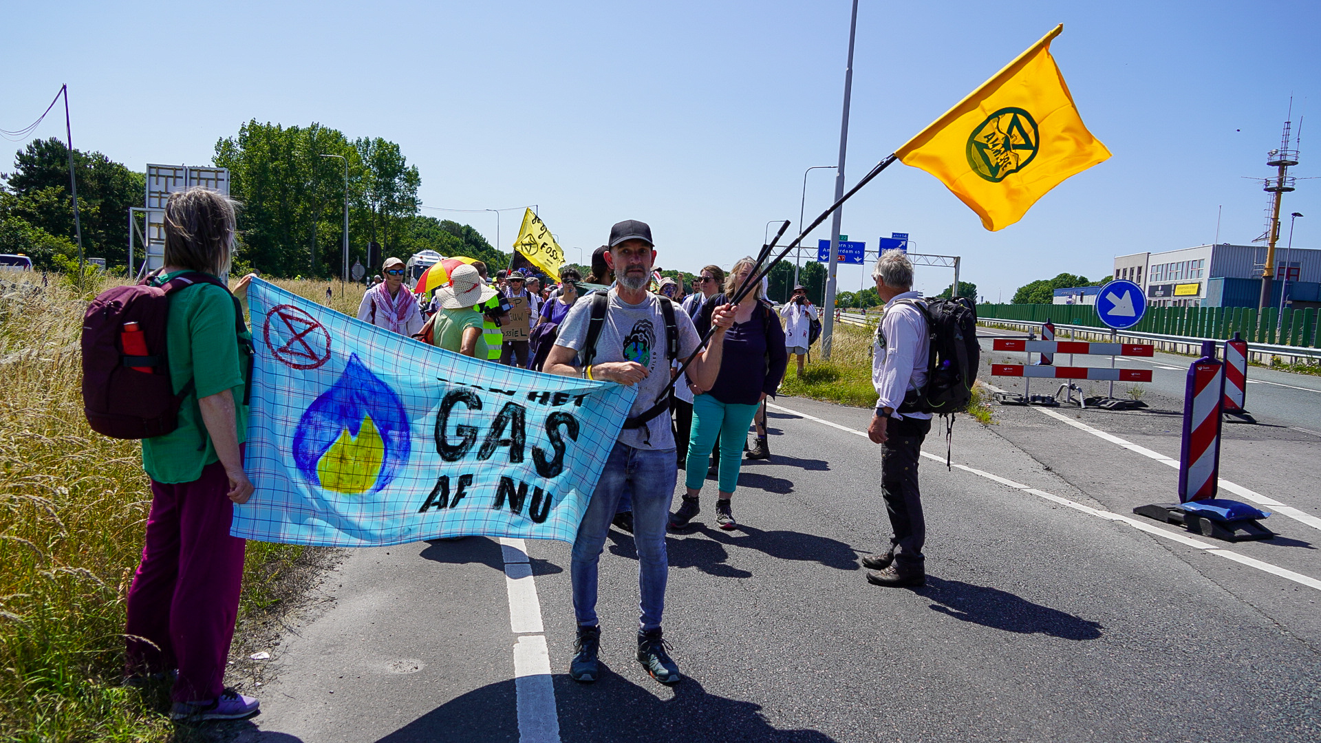 DEN OEVER – Klimaatactivisten van Extinction Rebellion en Scientist Rebellion hebben zaterdagmiddag een deel van de Afsluitdijk (A7) geblokkeerd ter hoogte van Den Oever in Noord-Holland. Door de actie is verkeer vanuit Noord-Holland richting Friesland tot stilstand gekomen.