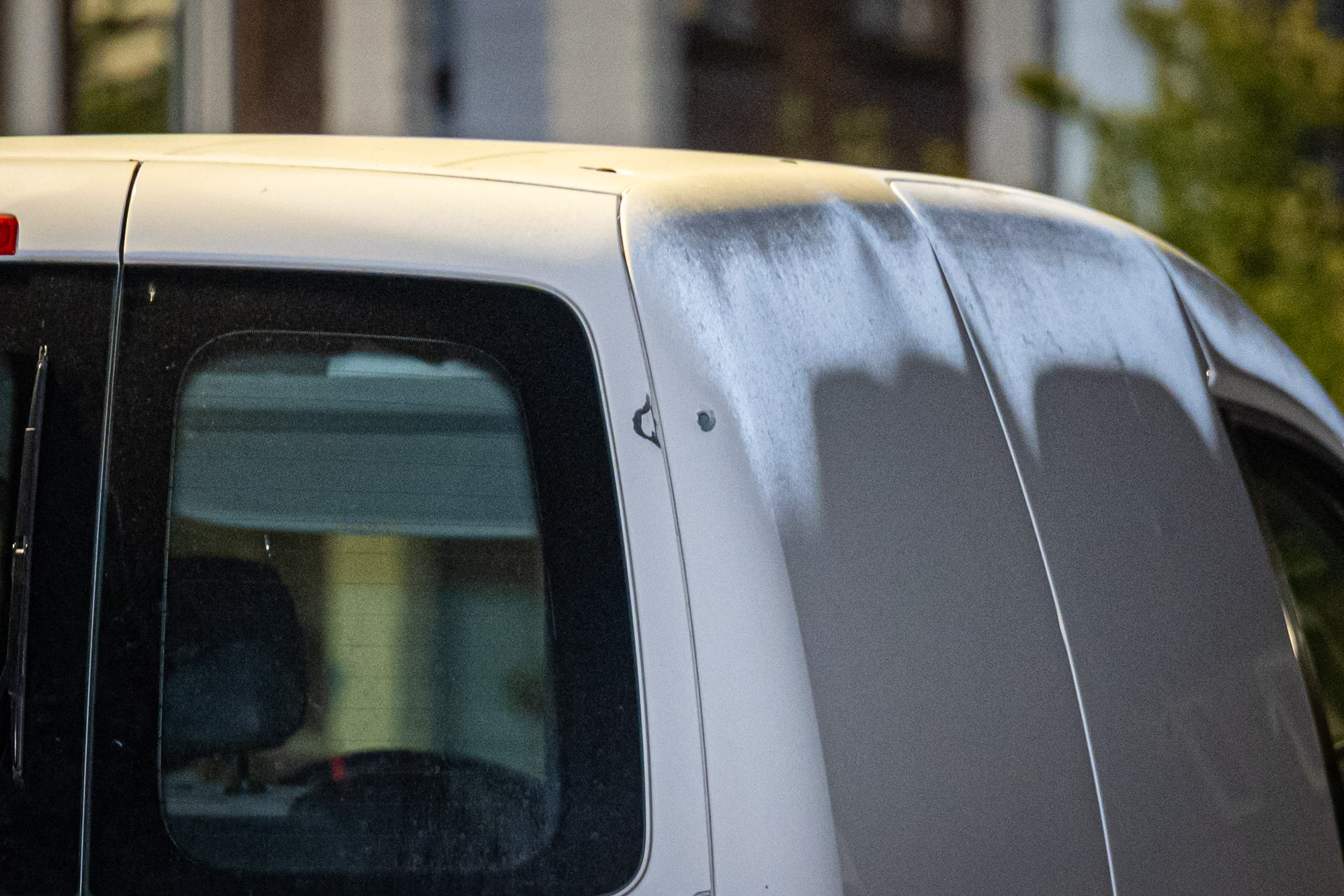 Geparkeerde bestelbus beschoten, kogelhulzen liggen op straat