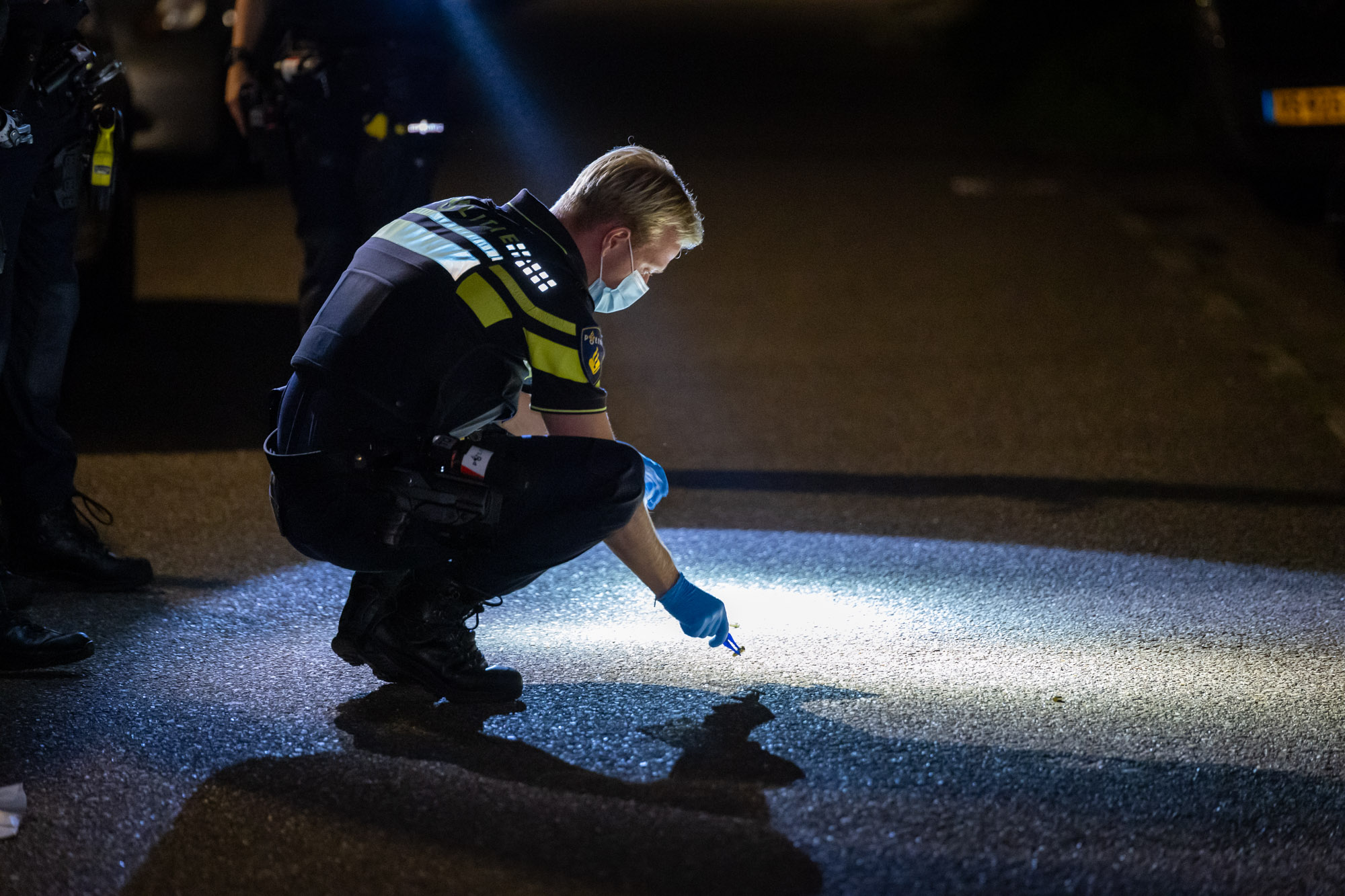 De politie heeft de sporen op straat meegenomen in verschillende zakken, de forensische opsporing en de recherche gaan overdag met de zaak verder. Het beschoten voertuig is door de politie afgesleept. Of er iemand is aangehouden is nog niet bekend.
