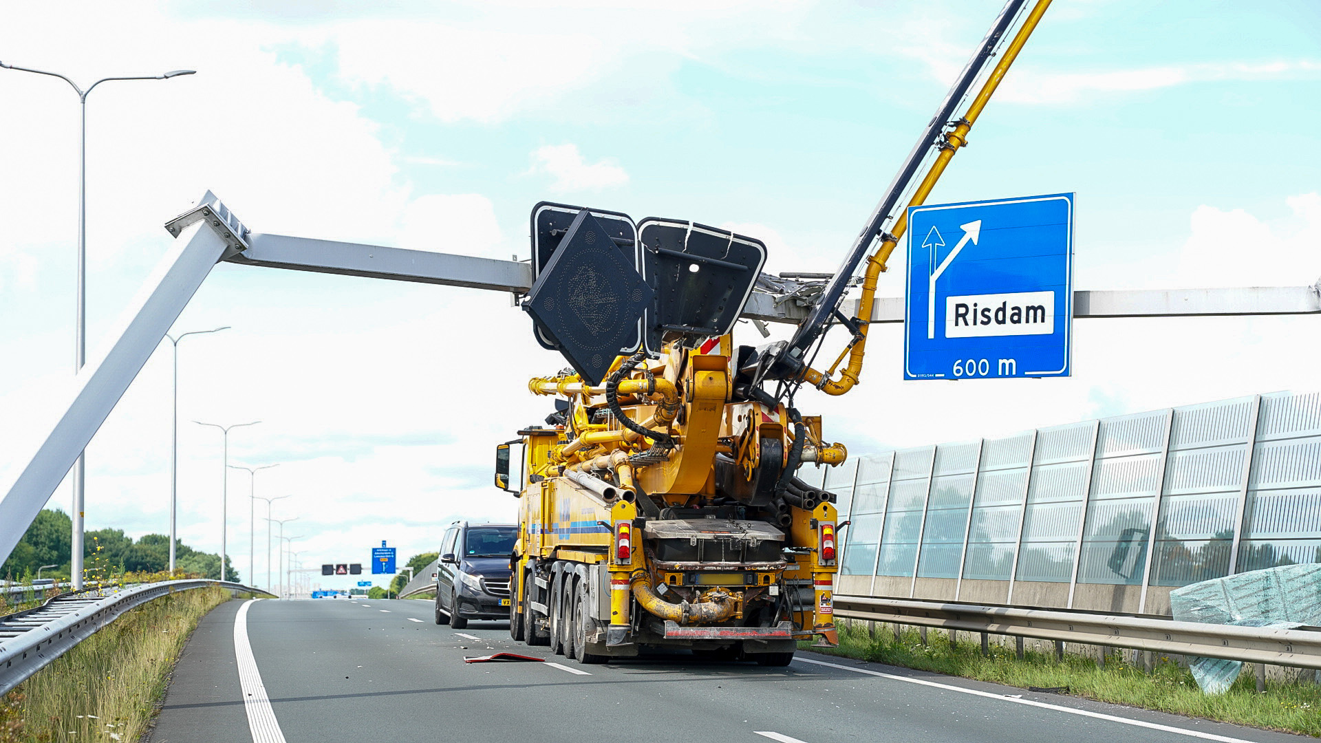Naast het verkeersportaal raakte ook een deel van een geluidsscherm beschadigd. Volgens getuigen zou de vrachtwagen eerder op hetzelfde traject al een ander verkeersportaal hebben geraakt met de kraan.